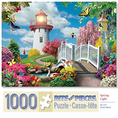 Spring Light is a 1000 piece jigsaw puzzle designed by Alan Giana. It measures 20" x 27" when completed. Since the 16th century, jigsaw puzzles have been a favorite pastime for all ages. Now, with technological advances, Bits And Pieces has taken jigsaw puzzles to a new level of superior quality and challenging fun. Every original Bits And Pieces jigsaw puzzle is made with ultra-heavy weight board and cut with quality random puzzle dies with fully interlocking pieces for a secure fit. At Bits And pieces, we believe that every truly exceptional jigsaw puzzle starts with the work of a truly exceptional artist. We understand what it takes to make a great puzzle. The kind that challenges rather than frustrates, where each area has depth and detail that unfold into a larger beauty. Bits and Pieces commissions original artwork by artists from around the world to create imaginative artwork that puzzlers like you are looking for in a wide variety of puzzle sizes and styles for any age or ability. We know every puzzler is different, so every Bits And Pieces original puzzle is manufactured in two different piece counts, ranging from 100 pieces to 2000 pieces. We also have an innovative collection of specialty puzzles including glow-in-the-dark puzzles, glitter effects puzzles, unique shaped puzzles and puzzles with oversized pieces.