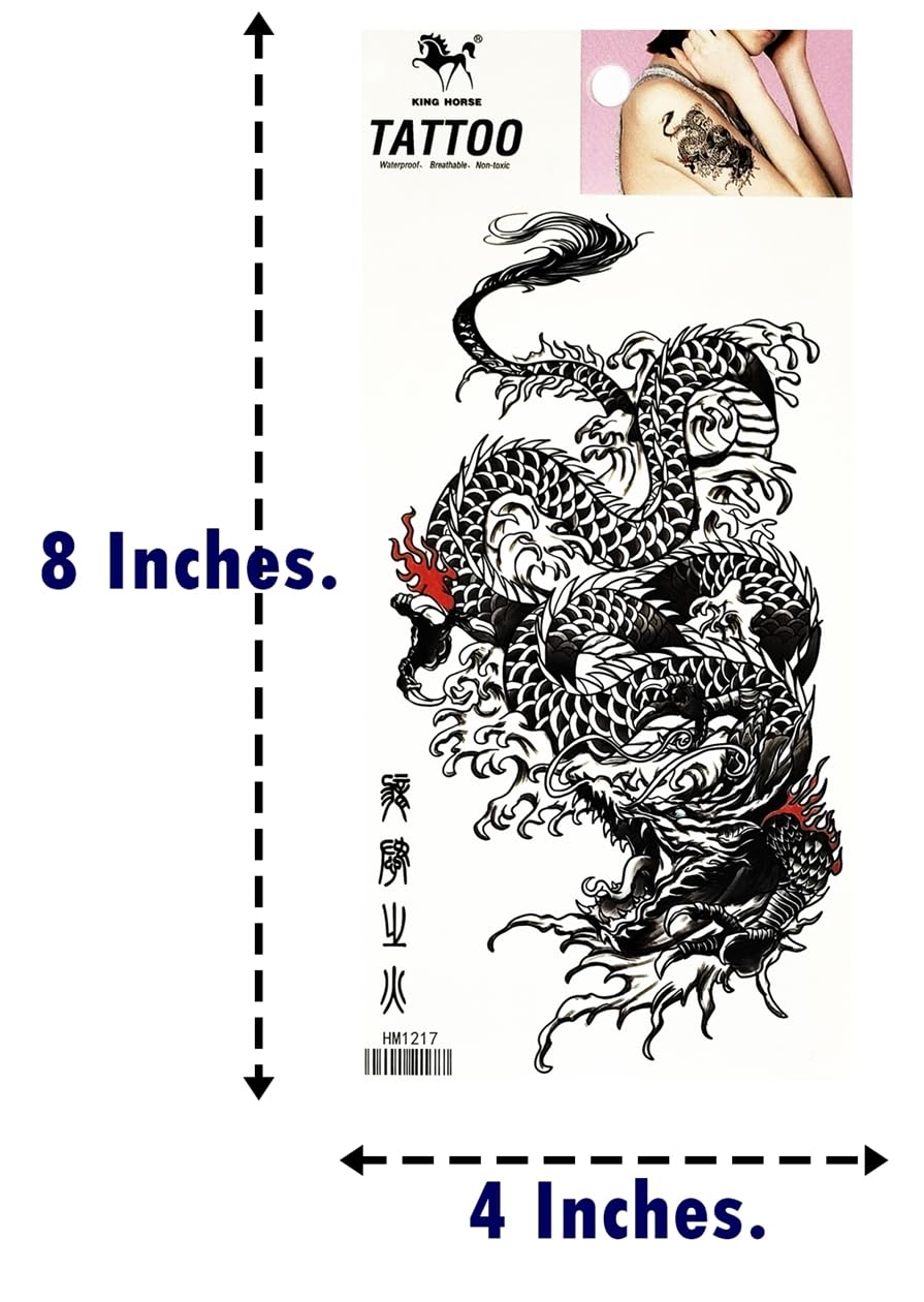 Black Chinese Dragon Waterproof Temporary Tattoo for Man Women Fake Tattoos Arm Leg Chest Shoulder Sticker Decal Festival Body Paint (Pack 2 PCS.)