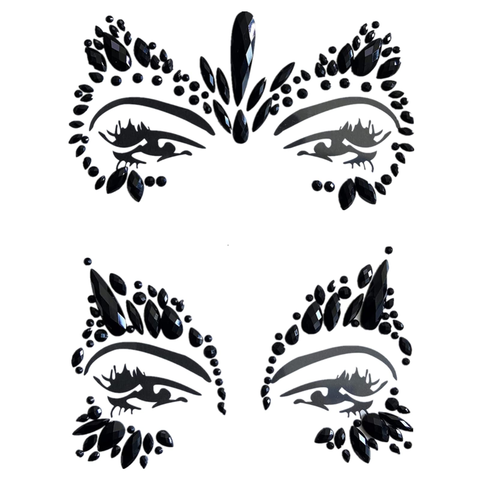 Black Halloween Face Gems, 2 Pcs Eco-Friendly Resin Material Self-Adhesive Mermaid Face Jewels Stick on Stickers Glitter Face Makeup Gems for Kids Festival Forehead Decorations