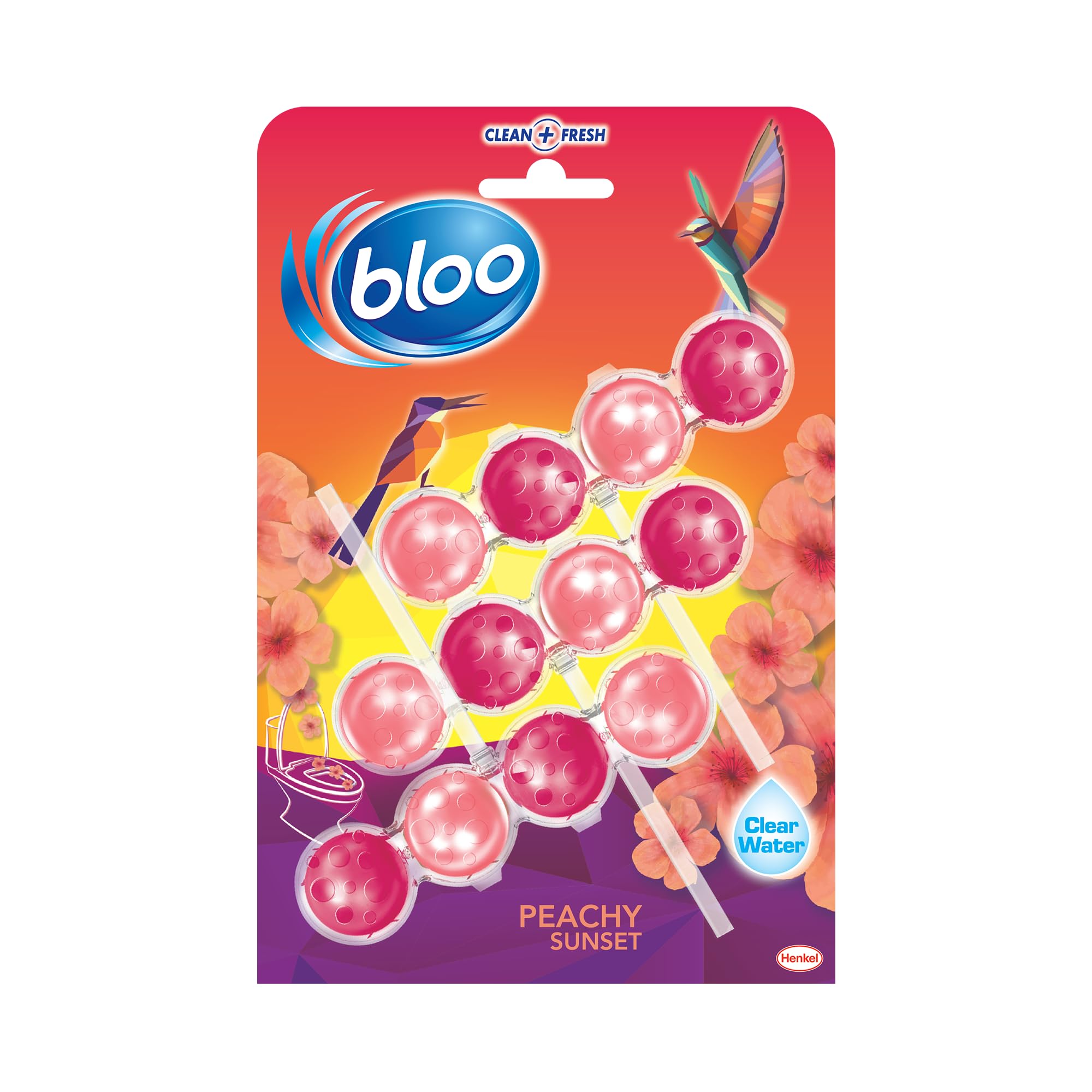 Bloo Limited Edition Peach Power Active Clear Water Toilet Cleaner Rim Block with Anti-Limescale, Cleaning Foam, Dirt Protection and Extra Freshness, 3 x Toilet Blocks