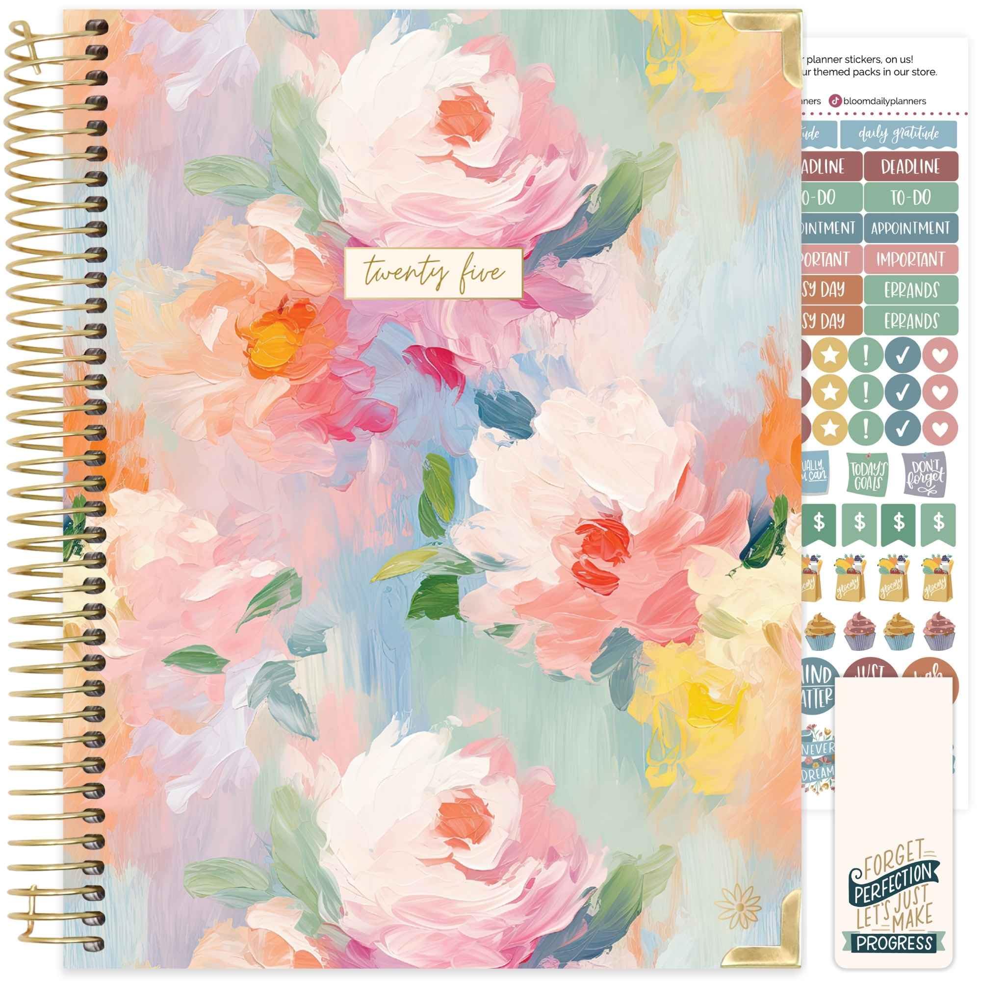 bloom daily planners HARDCOVER 2025 (8.5" x 11") Calendar Year Day Planner (January 2025 - December 2025) - Passion/Goal Organizer - Monthly & Weekly Inspirational Agenda Book - Painted Peonies