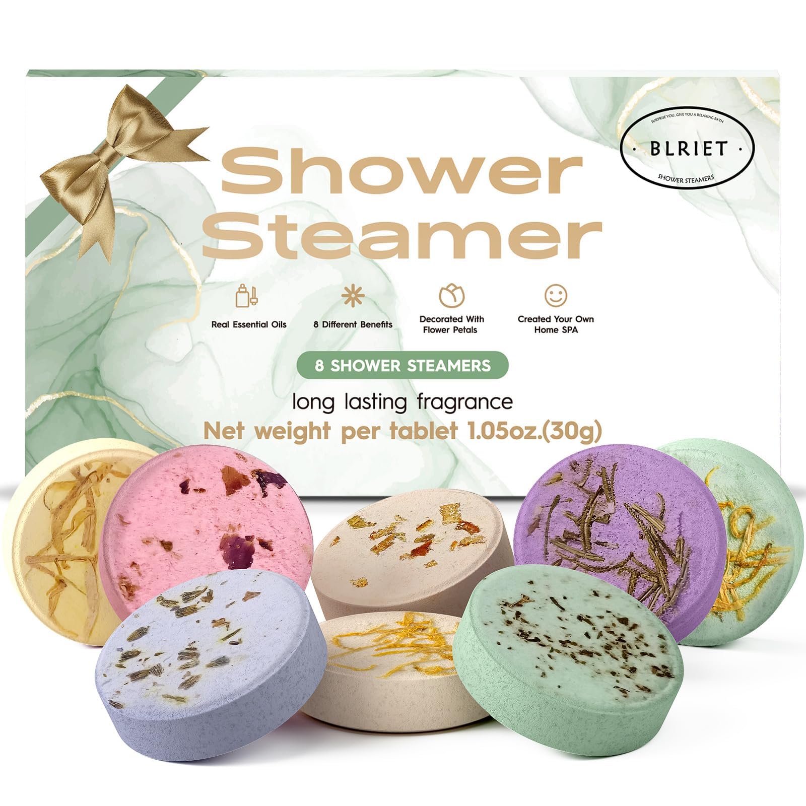 Christmas Gift Options - Beautiful package for you to send as a gift without repackage it. Containing 8 packs of 7 scents, every bath is an amazing experience. Natural Ingredients - BLRIET is made with the finest ingredients. Soothing and no side effects, you can enjoy mesmerizing personal spa without worry. Superior Scent - Developed and repeatedly blended in the laboratory by master perfumers. The amazing smell is perfect to use as stocking stuffers. Deep Relaxation - Newest shower steamers formula with stronger scent and longer lasting effects. Highest concentration of flavor, with 20% to 45% more aromatic compounds than other products. Personal Spa - A one-of-a-kind home spa experience where scented steam will slowly envelop and surround you, enjoy the serenity.