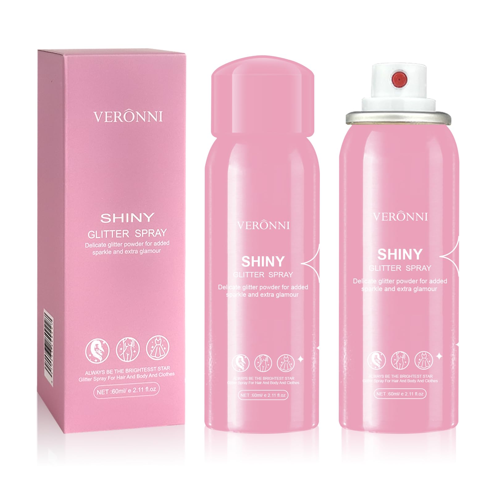 Our Body Glitter Spray is a multi-purpose temporary glitter spray, you can spray it on your hair, skin, body, nails, face, neck, legs and clothes, spray some on your collarbone and shoulders for a super sparkly effect. Make yourself the centre of attention under the lights at a party or nightclub, make yourself shiny and charming every day!
