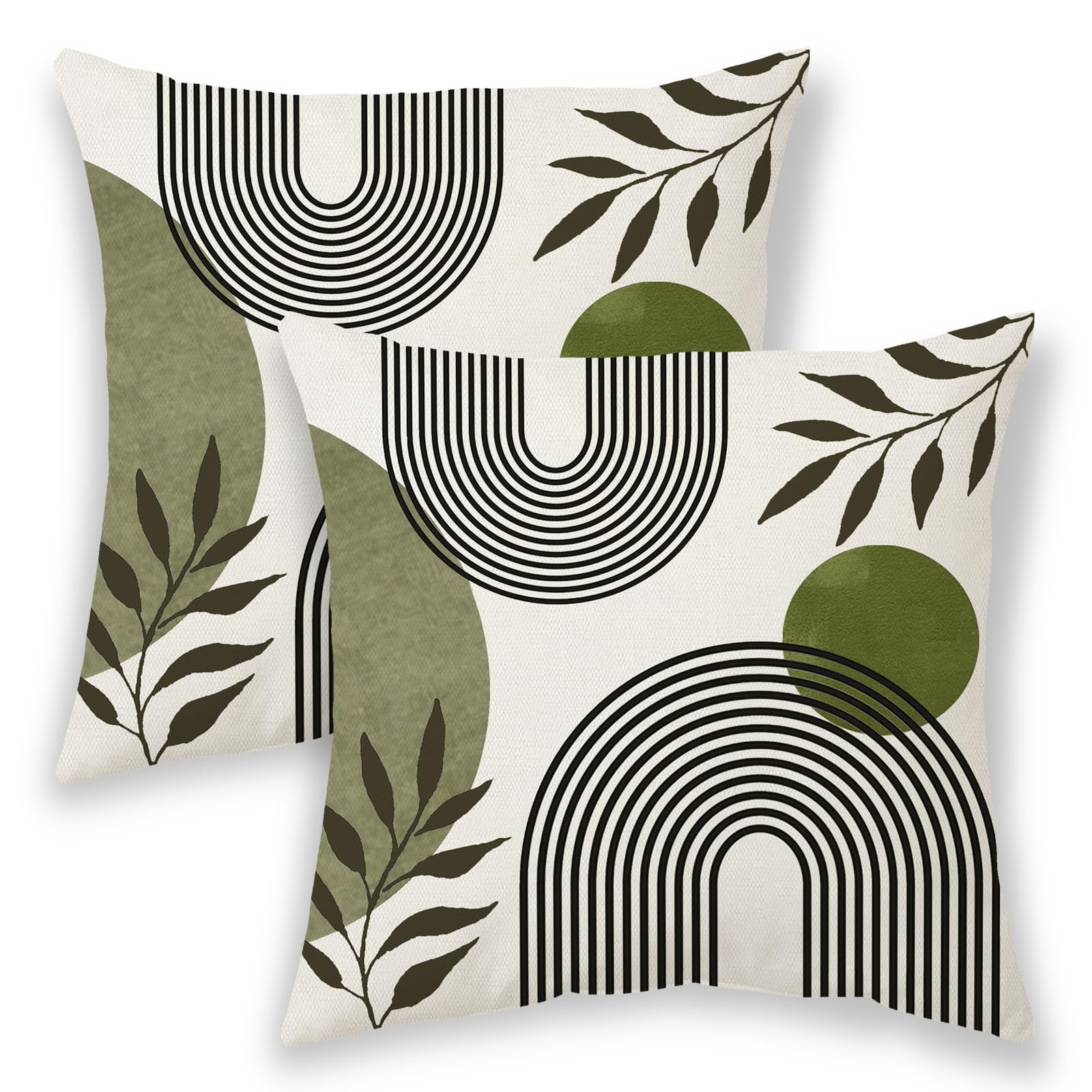 Boho Summer Pillow Covers 22x22 Inch 2 Pcs, Sage Green and Tropical Leaf Outdoor Decorative Throw Pillows, Mid Century Abstract Art Farmhouse Decor Pillowcase Linen Cushion Cover for Couch Sofa