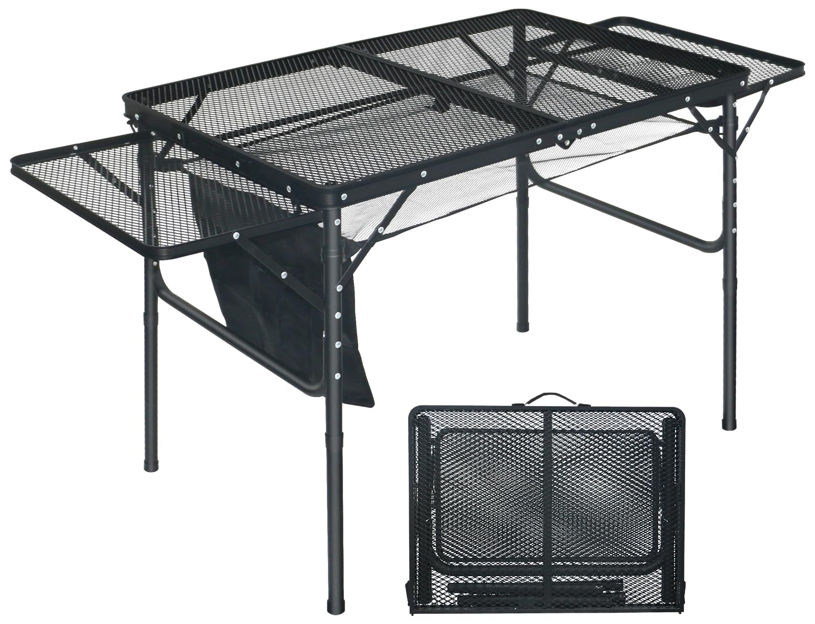 ??Foldable, easy to transport: outdoor folding barbecue table is made of lightweight steel material. The total weight is 5 kg. Outdoor transport is made easier thanks to its collapsible design. The carrying handle and sturdy storage bag make transport a breeze and protect the table better.