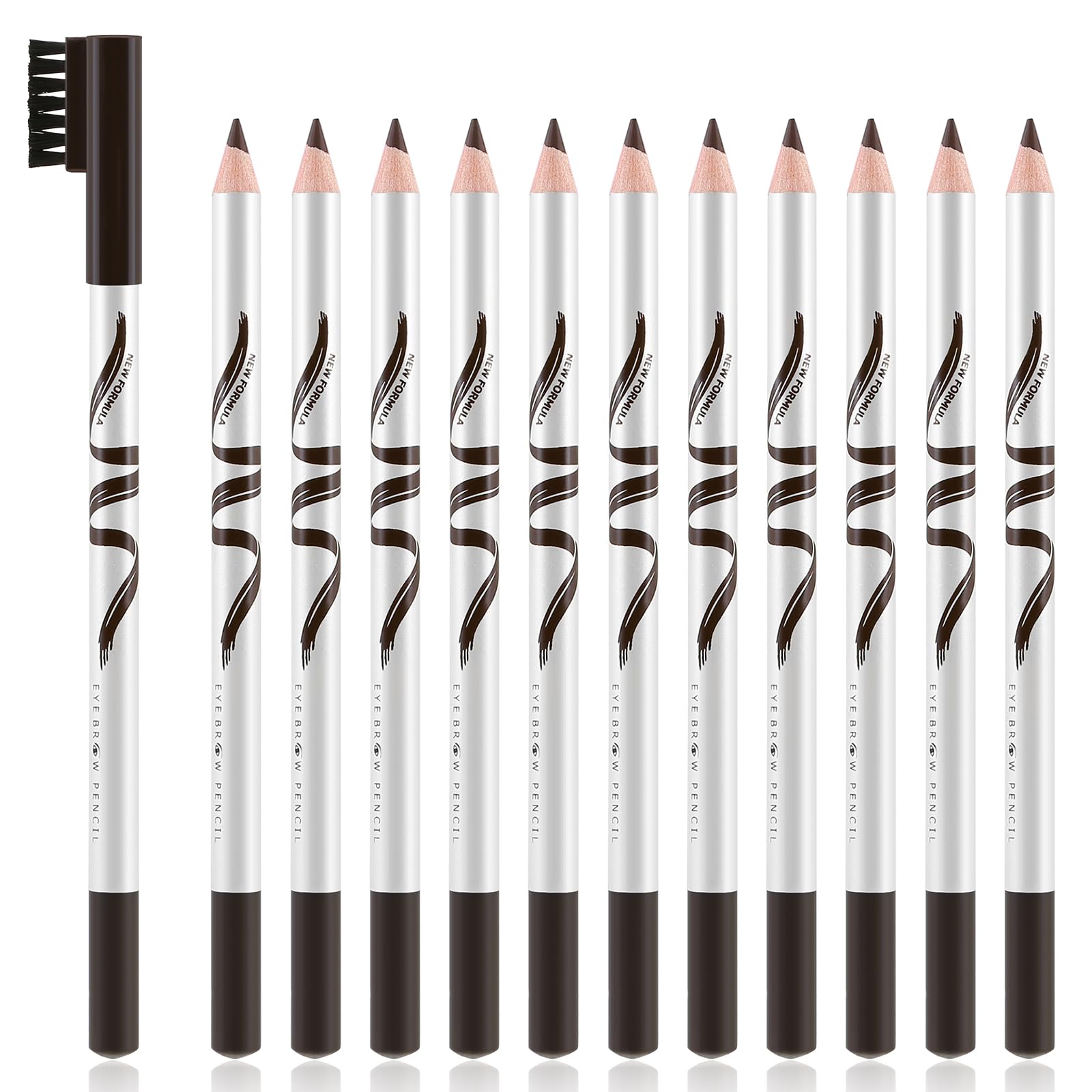 Boobeen Pack of 12 Eyebrow Pencils with Soft Brush, 2-in-1 Natural Waterproof Eyebrow Pencil, Long-Lasting Eyebrow Make-Up, Black Eyebrow Pencil Set, Eyebrow Pencil
