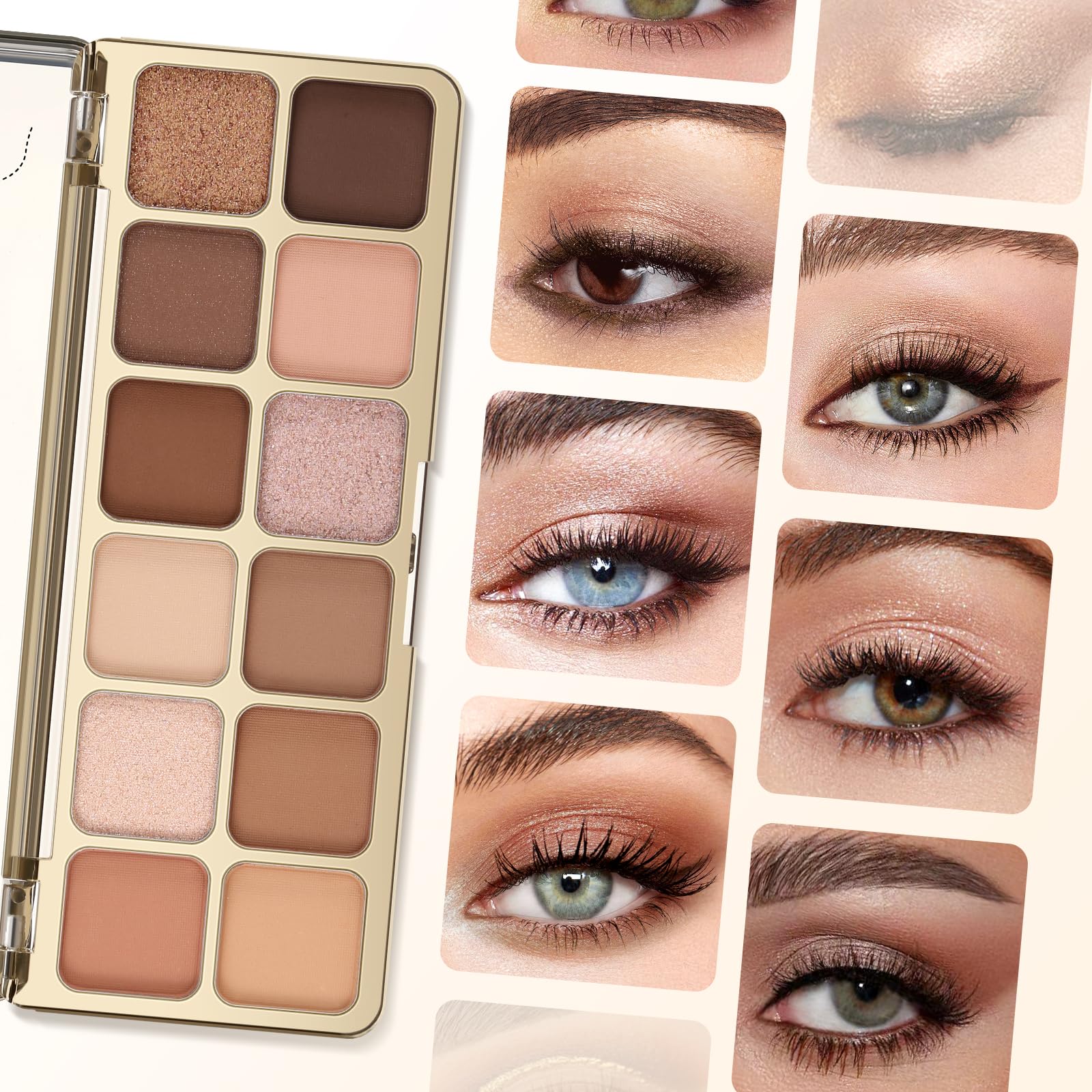 Boobeen 12 Shades Eyeshadow Palette Makeup, Blendable High Pigmented Eye Shadow for Natural Eye Look, Neutral Nudes Eye Shadow Makeup for Women, Create Matte and Shimmer Finishes, All Day Wear