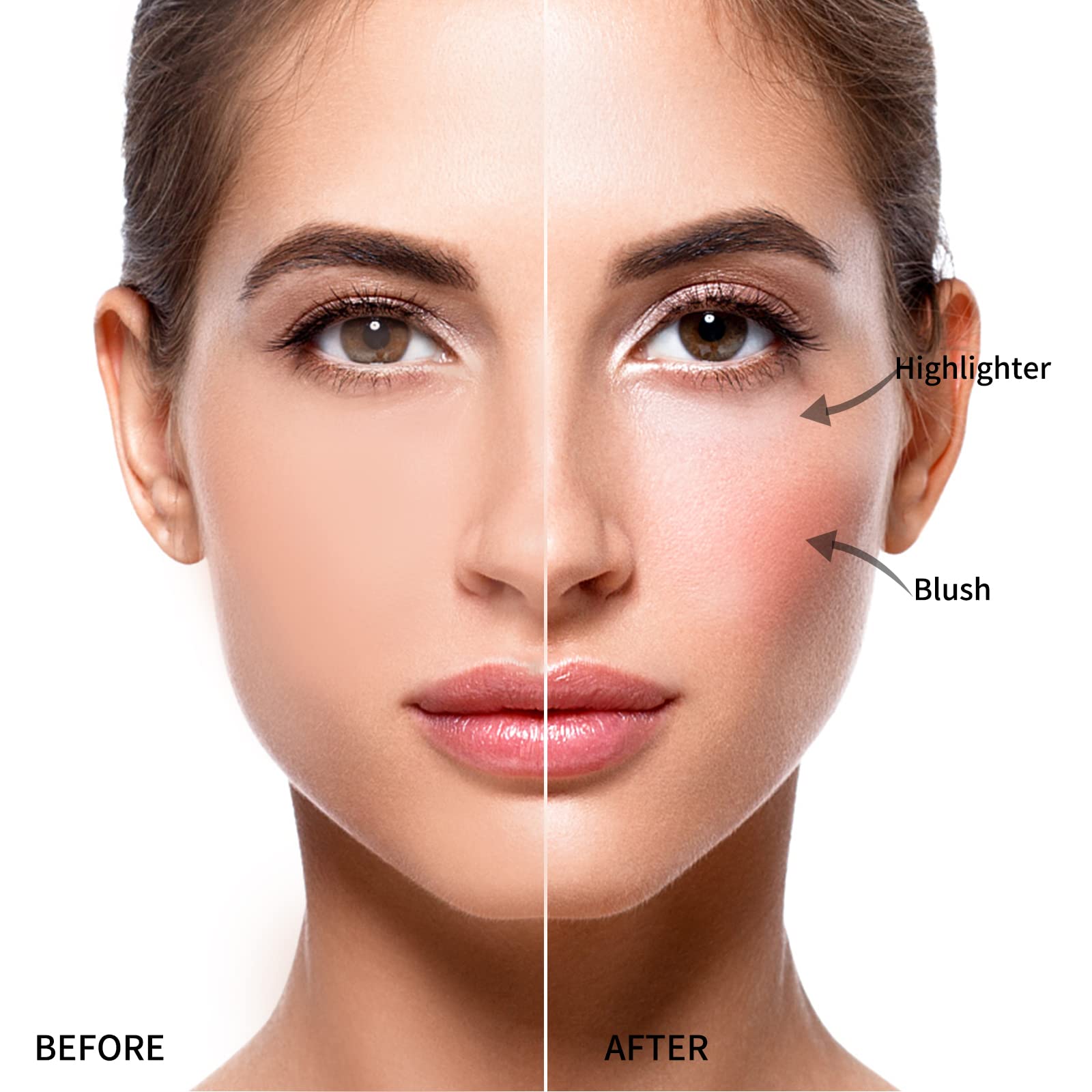 Boobeen Blush and Highlighter Kit, 3 in 1 Makeup Pressed Powder Palette Shimmer Bronzer, Orange&Pink Matte Blusher Blendable Glow Face Palette for a Redness and Glowing Look