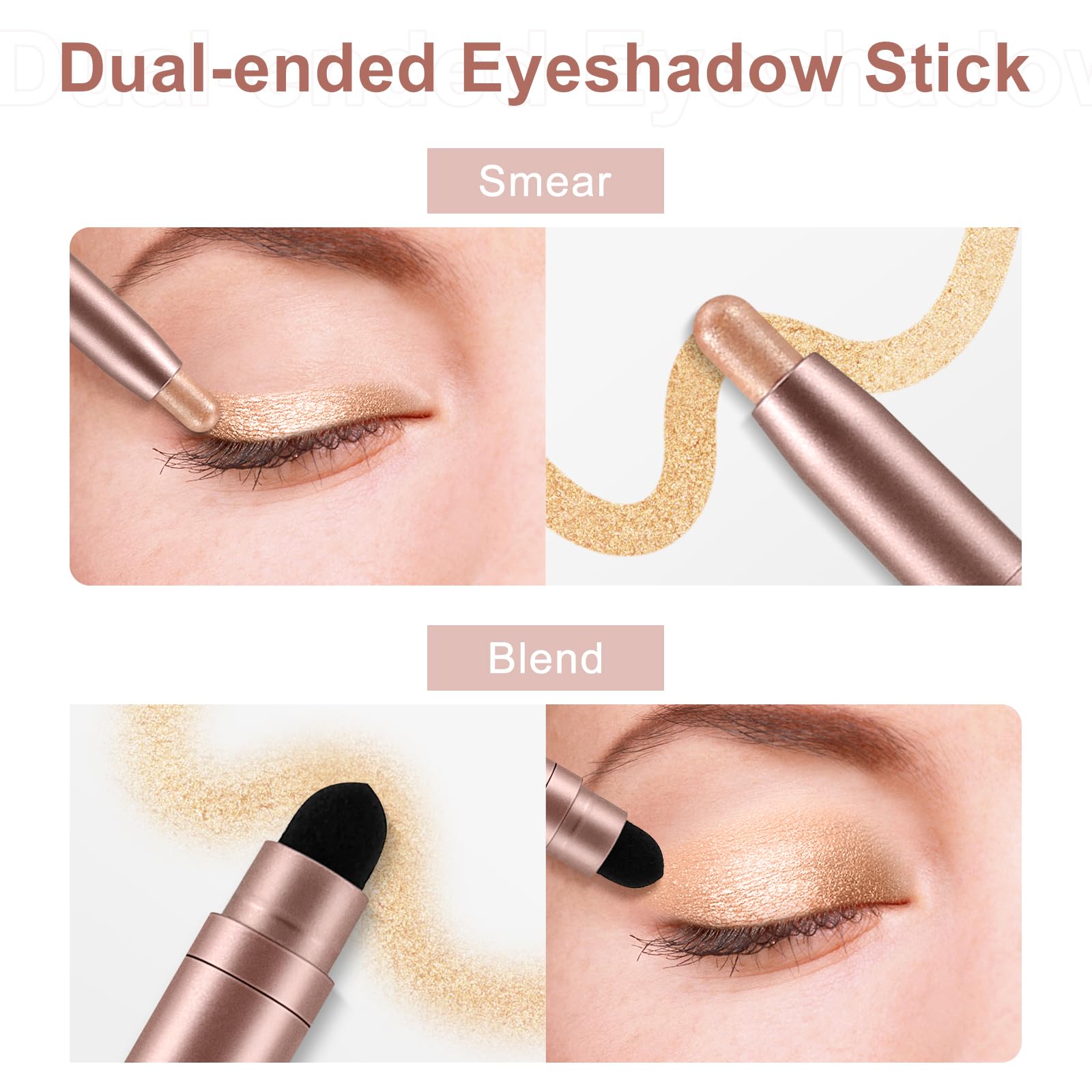 Boobeen Cream Eyeshadow Stick Pigmented, Matte Shimmer Eyeshadow Pencil with Applicator Sponge, Blendable Shadow Stick, Build up Glamorous Eye Makeup