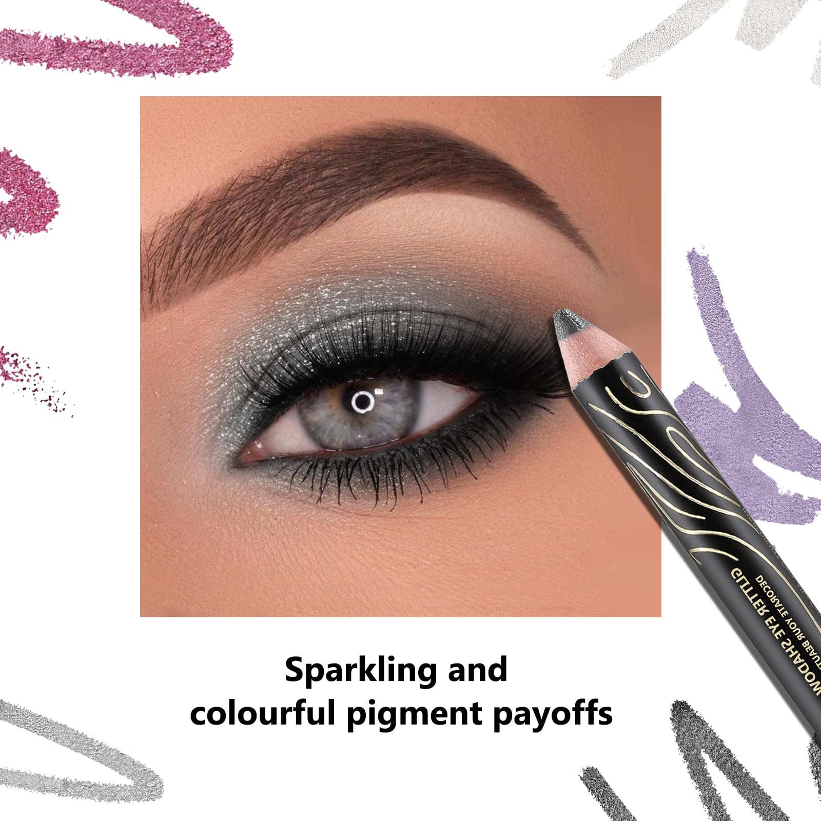 Boobeen Glitter Eyeshadow Crayon Pencil, Metallic Shimmer Eyeliner Eyeshadow Stick, Long Lasting Highlighter Pencil for Eye Contour, Highly Pigmented