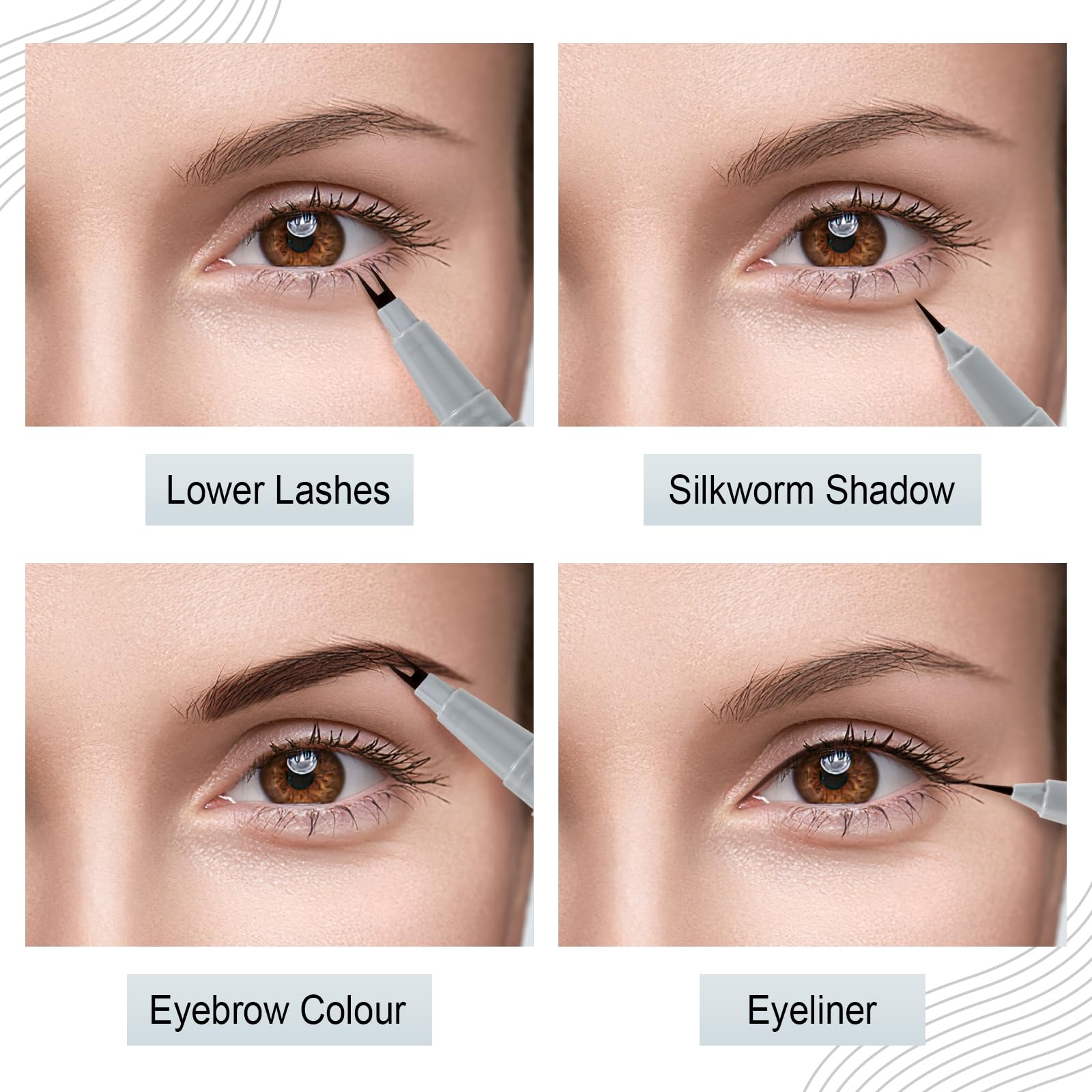 Boobeen Lower Eyelash Pencil, Double Tip Lower Eyelash Liner, Waterproof Liquid Eyeliner Pen, Precise Definition, Create to Natural Look Manga Lashes