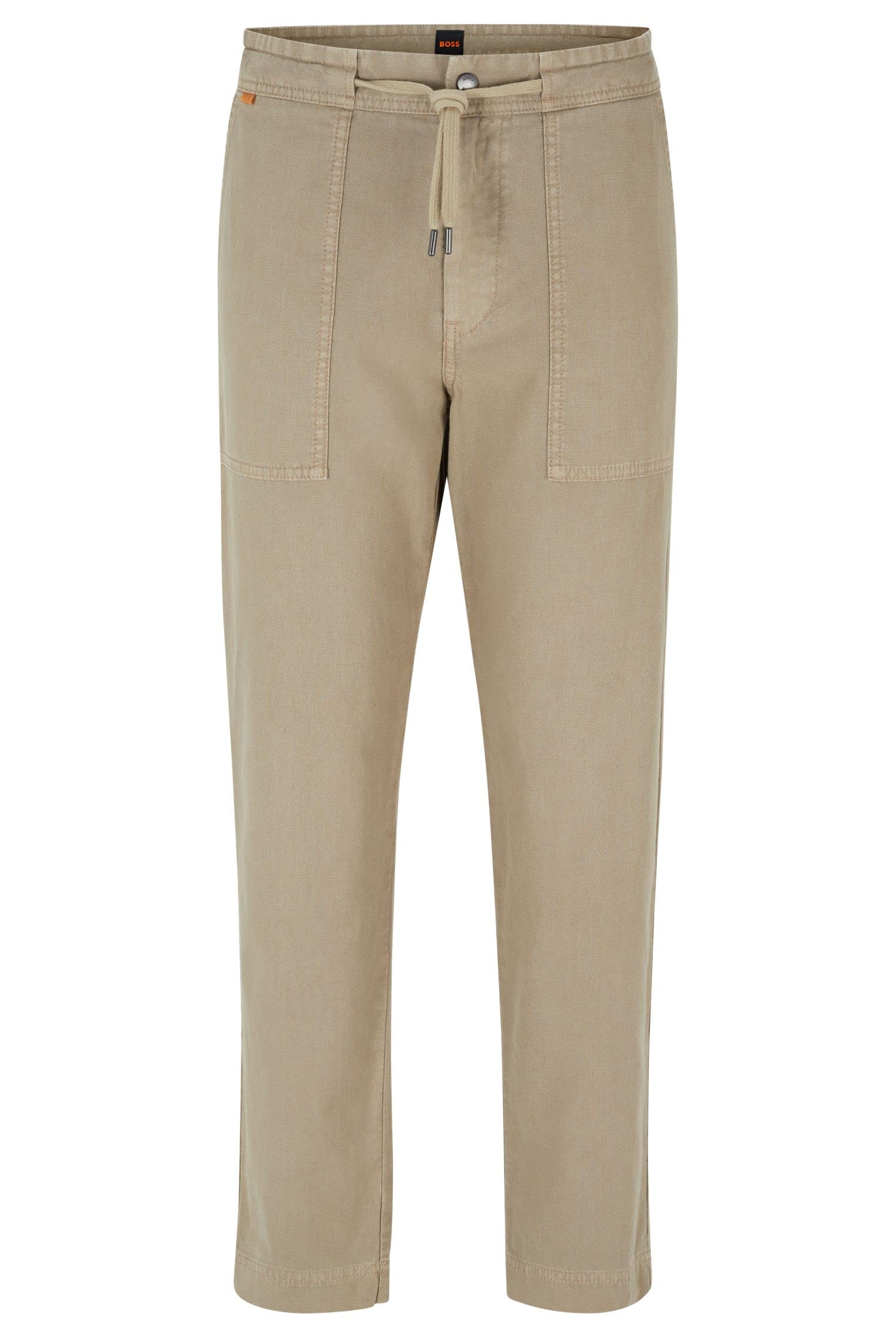 Regular-fit trousers in linen and cotton. Regular fit. Regular rise. Button and zip closure. Model Size: Size 50, Height 188, Waist 77, Bust 95, Hips 94