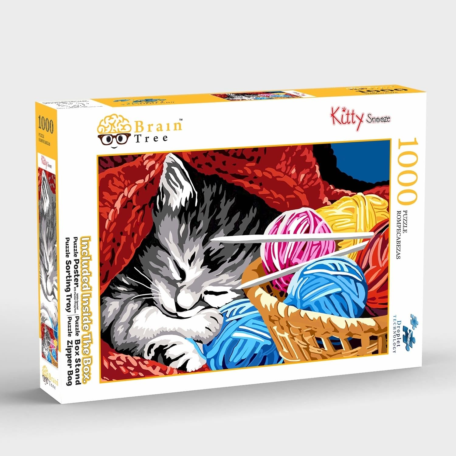 Brain Tree - Kitty Snooze 1000 Piece Puzzle for Adults - Unique Puzzles for Adults 1000 Pieces and up with Droplet Technology for Anti Glare & Soft Touch - 27.5”Lx19.5”W