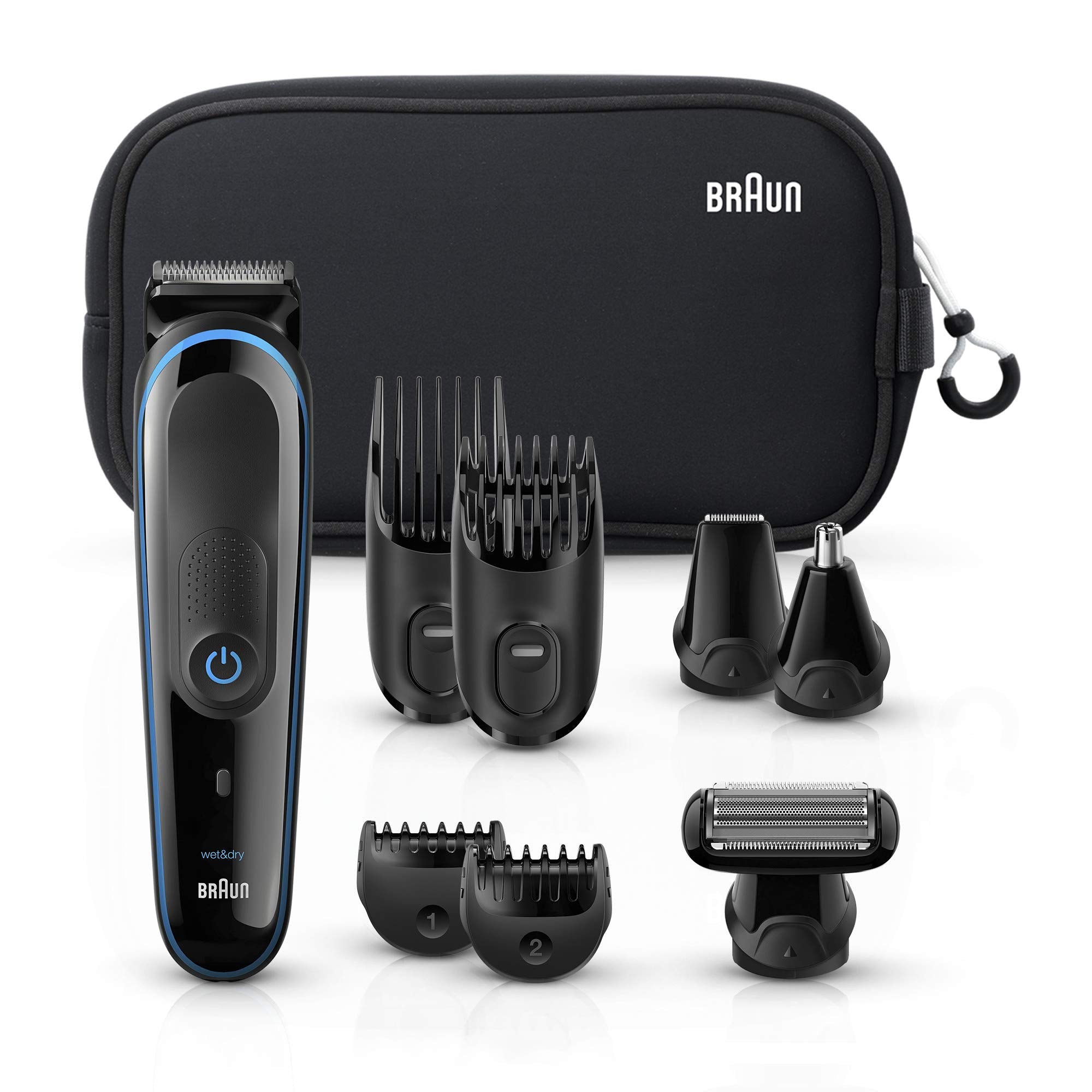 Braun Hair Clippers for Men, 9-in-1 Beard, Ear & Nose Trimmer, Body Grooming Kit, Cordless & Rechargeable with Gillette ProGlide Razor, Black/Blue, 9 Piece Set