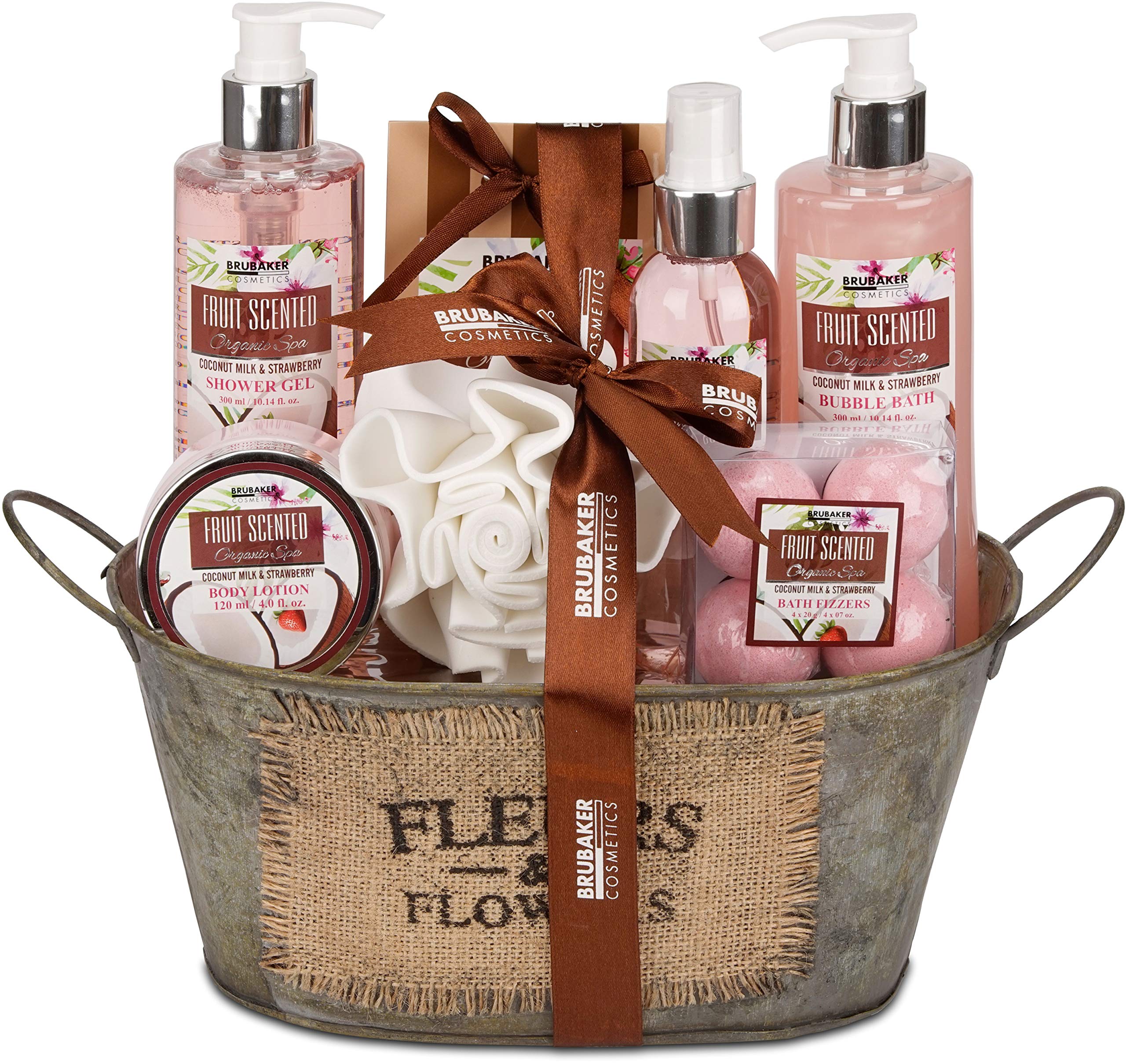 BRUBAKER Cosmetics 'Coconut Milk & Strawberry' 10-Pieces Bath Gift Set in Vintage Tub