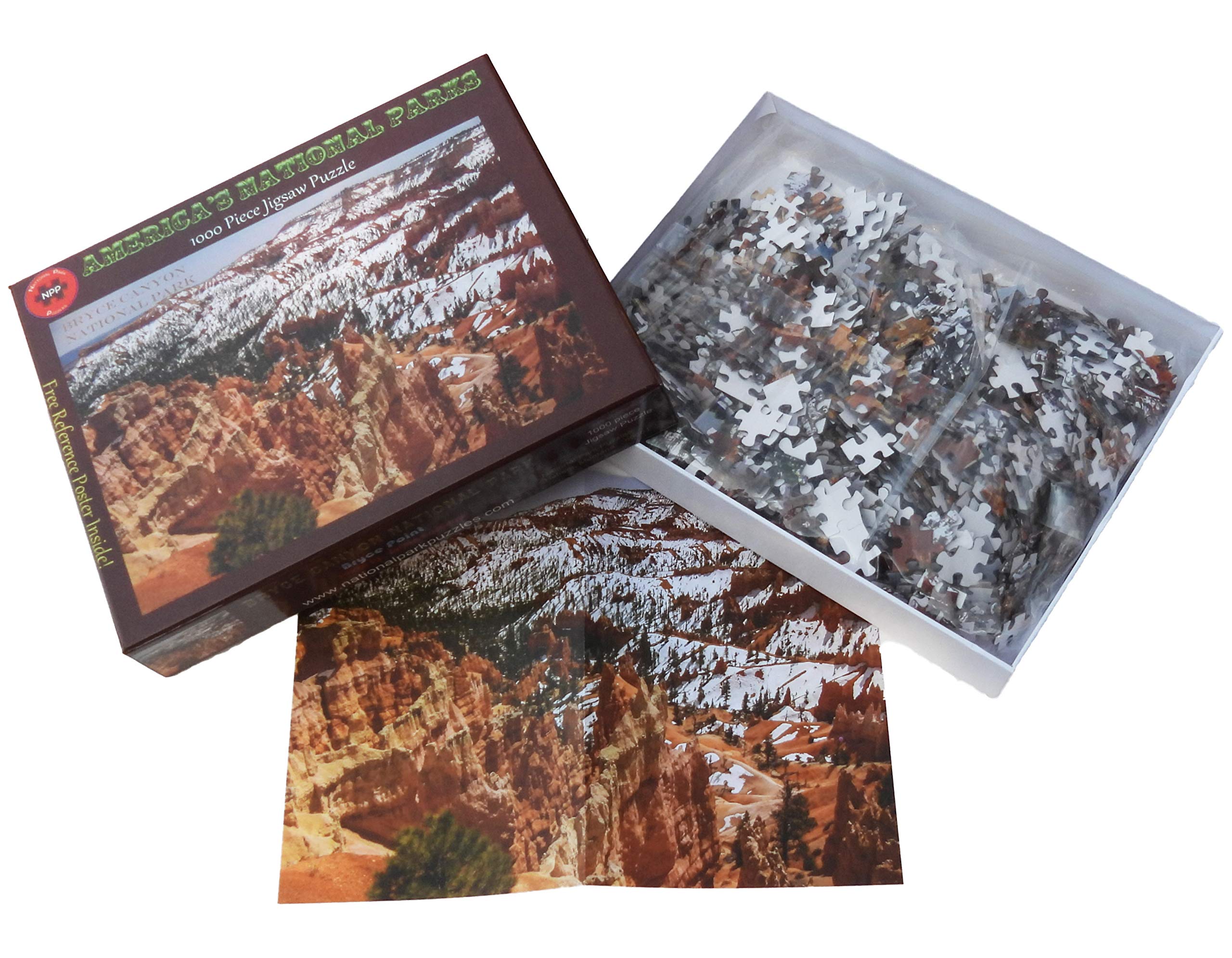 Beautiful image of Bryce Point located at Bryce Canyon National Park. Our 1000 piece puzzles are 27.6 x 19.7 inches , differing piece shape to produce an interlock so tight you can pick it up and flip it over without losing a piece, Grade A chipboard 1/16 inch thick for sturdy, durable pieces that wont bend or break, and a premium glossy print making a puzzle you will love to hang on your wall when you are done! Reference Poster is included in the box!