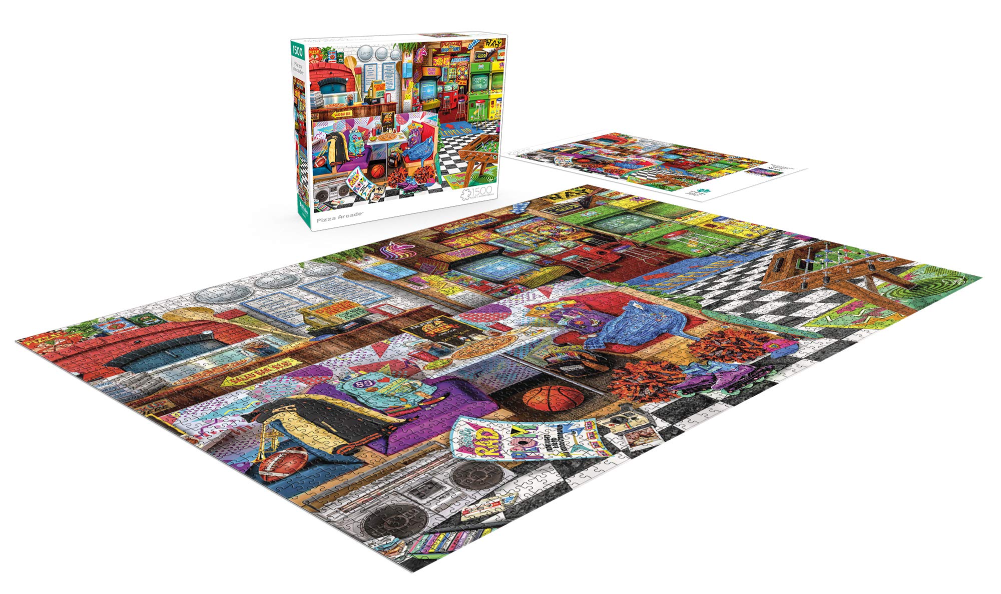 There is a lot to discover and explore in this 1500-piece high-quality jigsaw puzzle based on the artwork of Aimee Stewart. Stewart is a self-taught artist, photographer and writer who specializes in lush, eclectic digital painting. Pizza Arcade is packed with 90s nostalgia, this scene takes you back to a pizza parlor arcade where you spent a lot of your time and quarters as a kid. Foosball, arcade games, pizza, and a boombox with a stack of cassettes, what more could a teenager want?! A bonus puzzle poster is also included so that you have a handy reference of what the completed puzzle should look like while you put yours together.