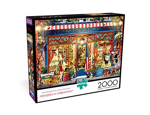 This 2000-Piece jigsaw puzzle, antiques & curiosities, has something for everyone! Step into this shop and find an antique baby stroller, vintage luggage or even a Knight in shining armor! Enjoy browsing through this collage of goods for the most amazing finds! Every Buffalo Games jigsaw puzzle is manufactured in the U.S.A. From recycled puzzle board. A precision cutting technique guarantees that every piece will fit soundly with the company's signature perfect Snap. A bonus puzzle poster is also included so that you have a handy reference of what the completed puzzle should look like while you put yours together.