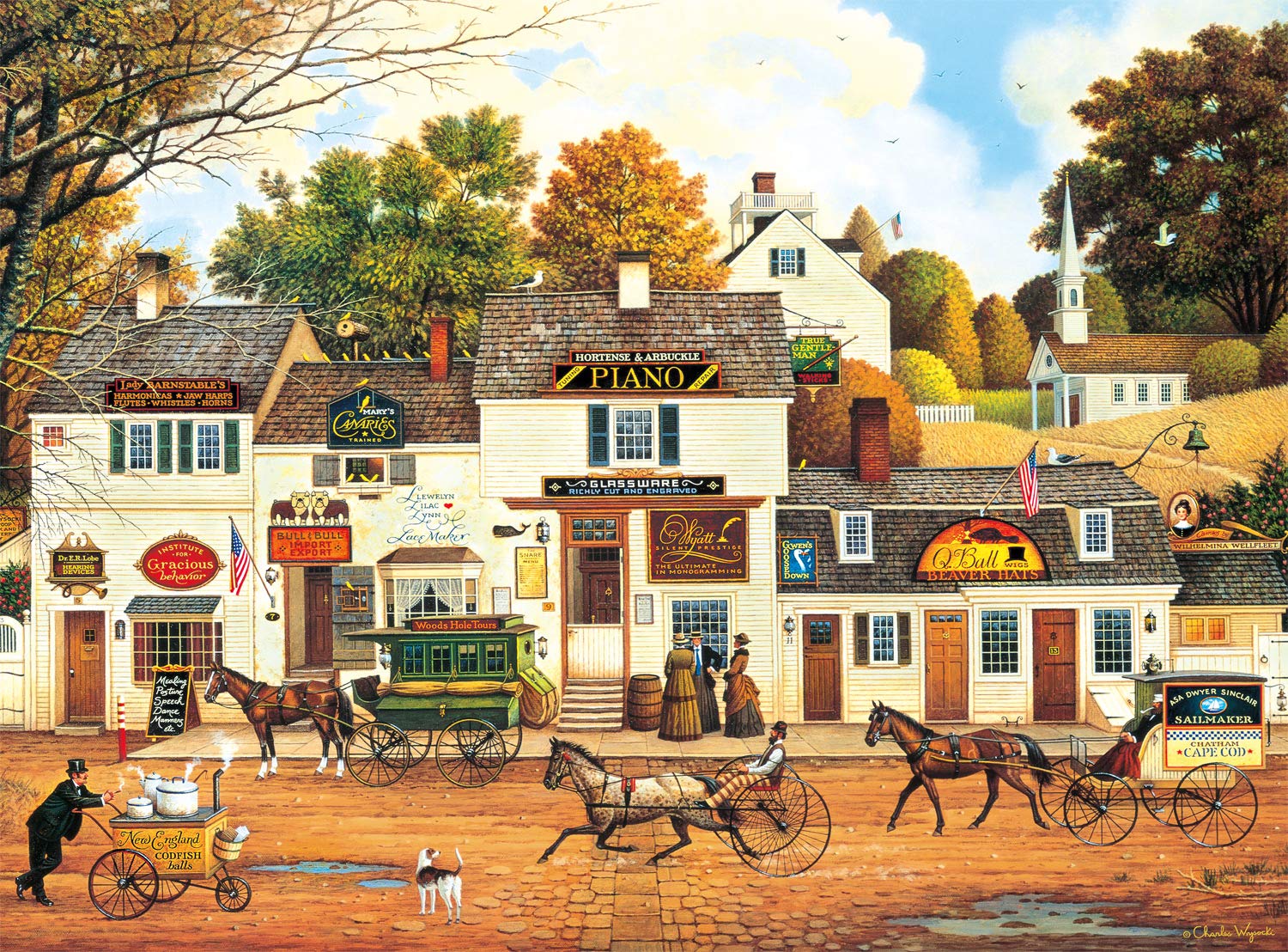 This 1000 piece jigsaw puzzle titled "Old Cape Cod" by Charles Wysocki is an extraordinary example of the incredible detail and artistry of the famed master painter. For more than 40 years, Charles Wysocki touched the hearts of millions worldwide through his imaginative and colorful artwork. "Chuck" felt a special kinship with puzzlers, who share in the creative process by building his paintings one piece at a time. Every Buffalo Games jigsaw puzzle is manufactured in the U.S.A. from recycled puzzle board. s signature Perfect Snap. A bonus puzzle poster is also included so that you have a handy reference of what the completed puzzle should look like while you put yours together.