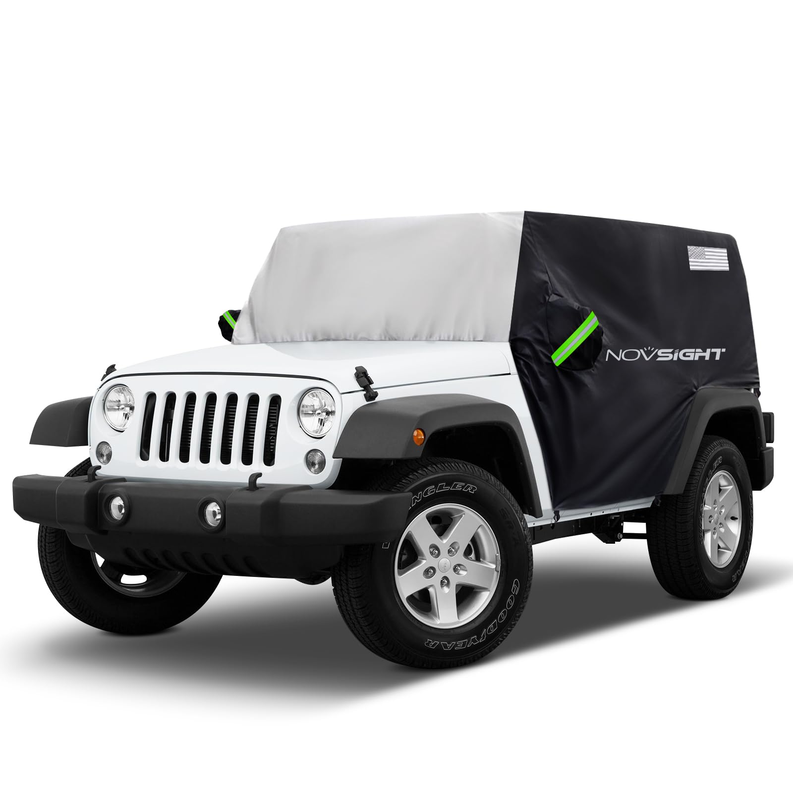 Cab Cover for Jeep Wrangler 2 Doors 1987-2023 CJ, TJ, JK, JL, NOVSIGHT All Weather Half Car Covers for Wrangler 2 Door with 3 Straps, Anti-UV Windproof Rain-Proof Auto Cover with Storage Bag