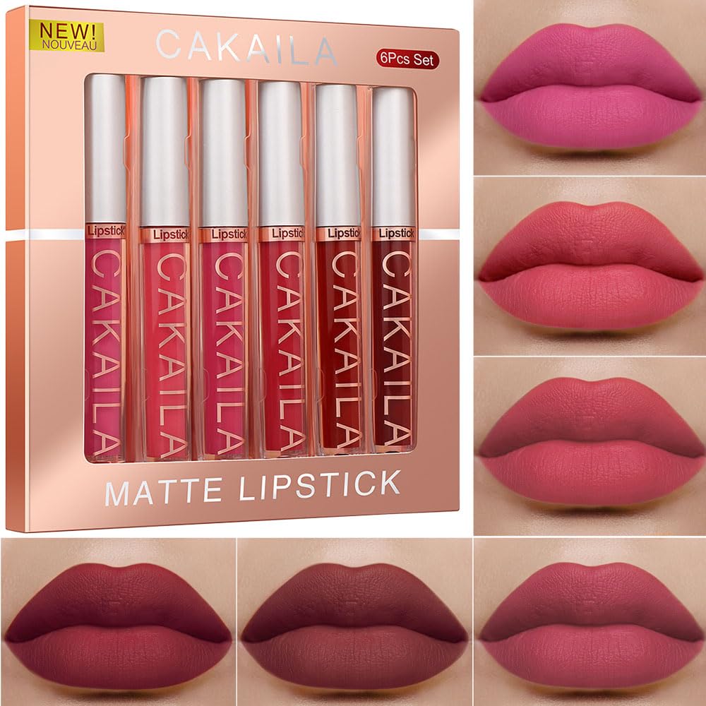 Cakaila 6Pcs Matte Liquid Lipstick Makeup Set,Pink Nude Burgundy Red Highly Pigmented Color Plumping Lip Gloss Long Lasting Waterproof Lip Stain Lip Gloss for Women Girls labiales matte