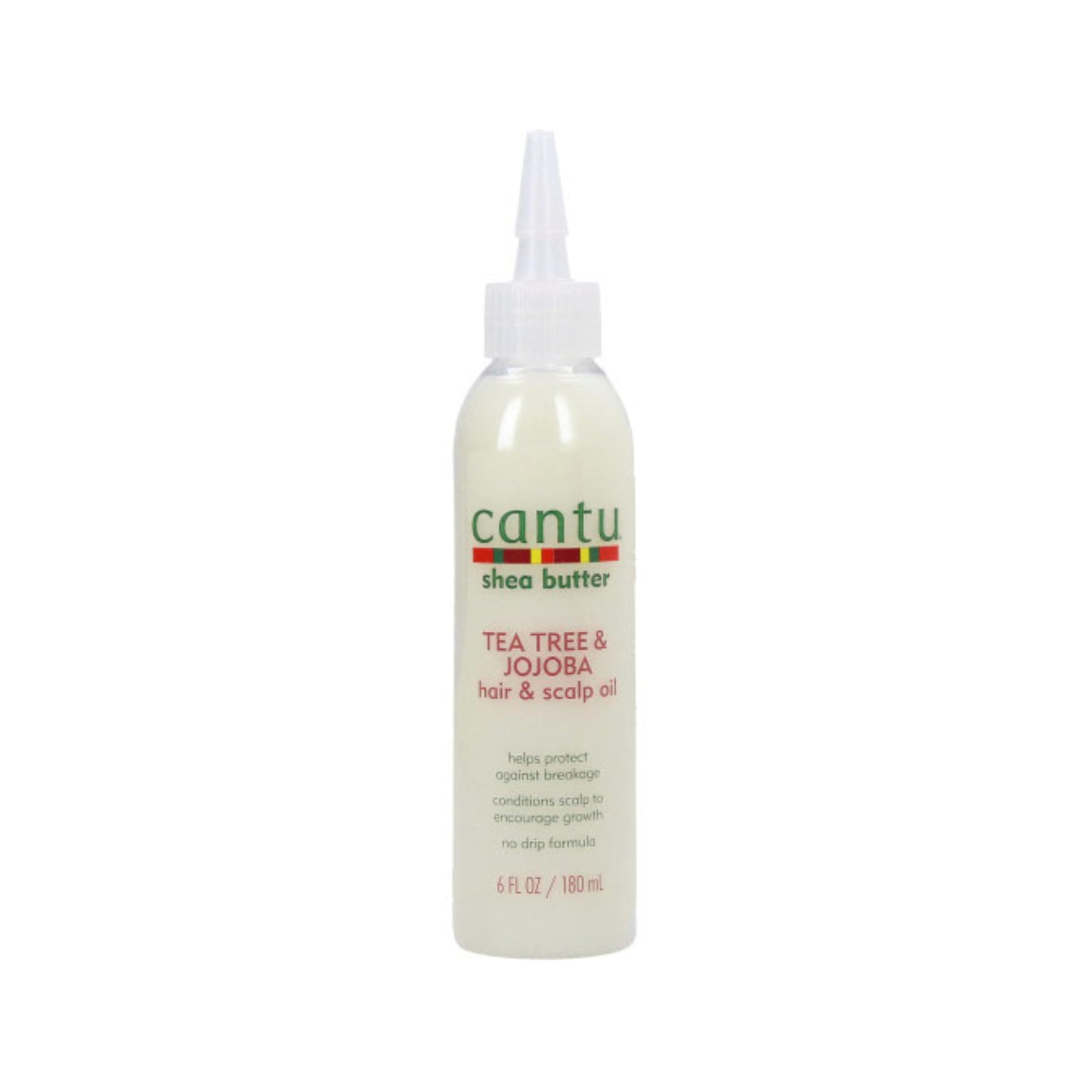DescriptionProduct DescriptionMade with pure shea butter, tea tree and jojoba oil to replace vital oils revealing stronger, healthier hair with a natural shine while conditioning the scalp. For Daily use on all types, wet or dry.Great for: Weaves, extensions & braids. Directions: Remove cap from nozzle to dispense product. Daily Styling: Dispense a small amount into hair beginning at the root. Comb through for even distribution. Do not rinse. Scalp conditioner: Part hair into sections revealing the scalp. Massage into scalp. Do not rinse. Style as usual.IngredientsPetrolatum, Canola Oil, Butyrospermum Parkii (Shea) Butter, Isopropyl Palmitate, Phenoxyethanol, Parfum (Fragrance), Ethylhexylglycerin, Simmondsia Chinensis (Jojoba) Seed Oil, Melaleuca Alternifolia (Tea Tree) Leaf Oil, Benzyl salicylate, Coumarin, Linalool, Hexyl cinnamal, Limonene.DirectionsRemove cap from nozzle to dispense product. Daily Styling: Dispense a small amount into hair beginning at the root. Comb through for even distribution. Do not rinse. Scalp conditioner: Part hair into sections revealing the scalp. Massage into scalp. Do not rinse. Style as usual.Box Contains1 x Cantu Shea Butter Tea Tree & Jojoba Hair & Scalp Oil 180ml