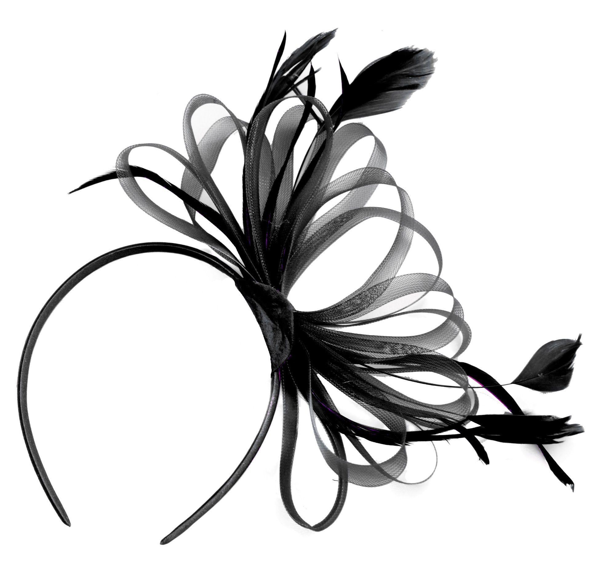 Black Fascinator Large Wedding Ascot Races Net Hat Feathers