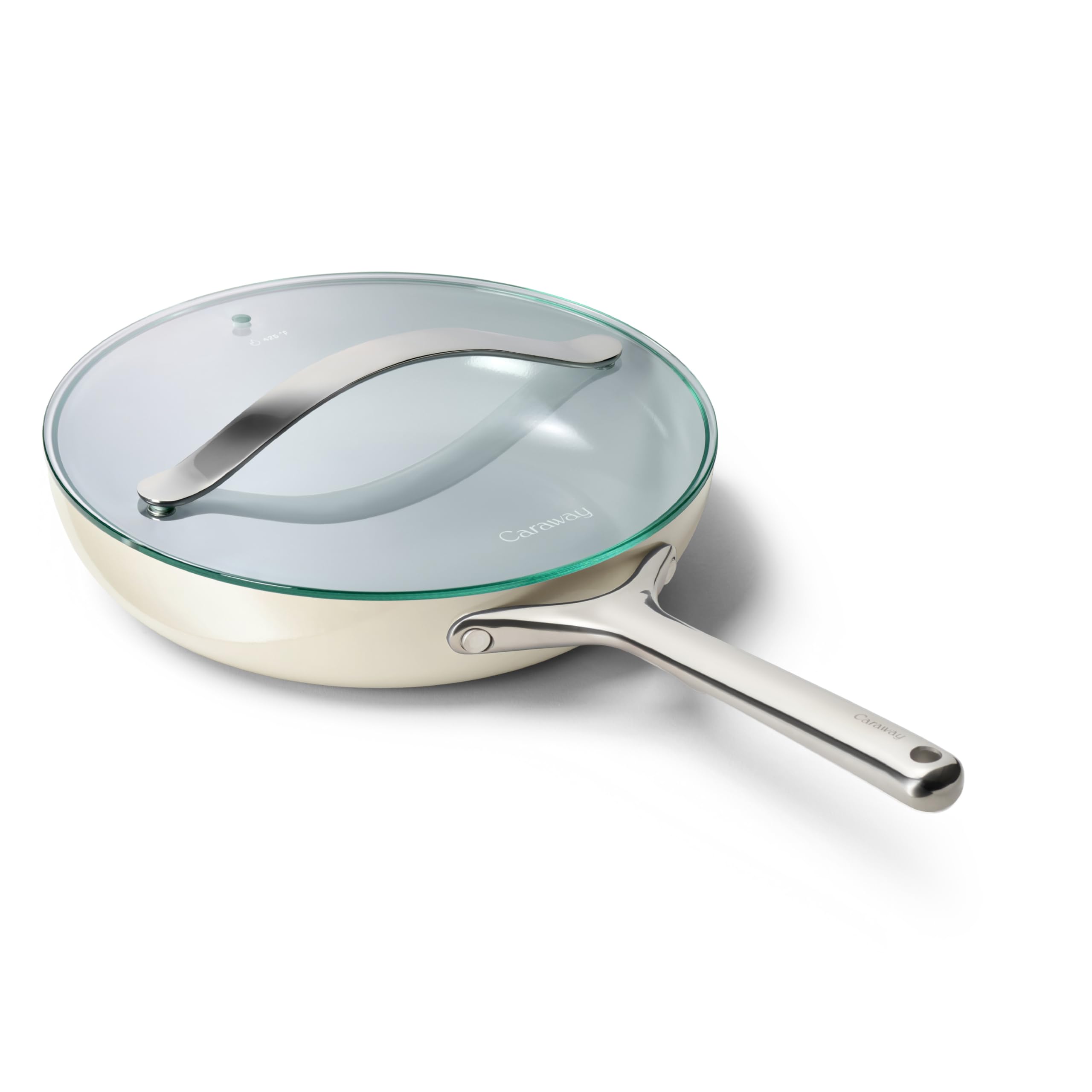 Caraway Nonstick Ceramic Frying Pan With Glass Lid (2.7 qt, 10.5") - Non Toxic, PTFE & PFOA Free - Oven Safe & Compatible with All Stovetops (Gas, Electric & Induction) - Cream