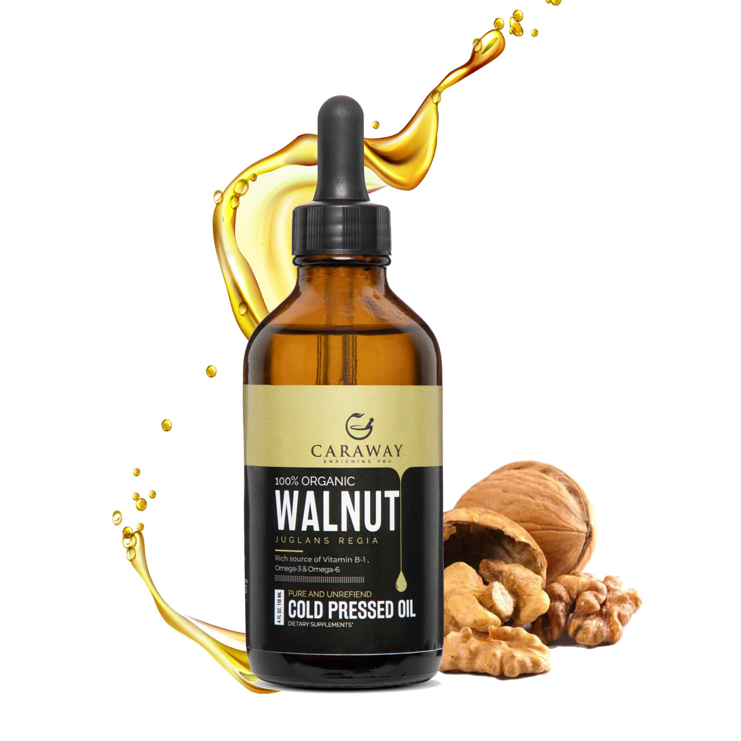CARAWAY Cold Pressed Walnut oil for Thyroid Massage is extracted by pressing Organic Walnut Kernels on a Sil-Batta, taking a step forward from commonly available Wood pressed Walnut Oil. It is then followed by 3-step Natural Sedimentation process making the Cold Pressed Walnut Oil Completely Unfiltered and Chemical Free. All this is done in our facility which is approved as per the Indian NPOP Organic Standards. With No-Middleman involved, the prepared Oil is packed and sent to Amazon Fulfilment Centers near you, waiting to be