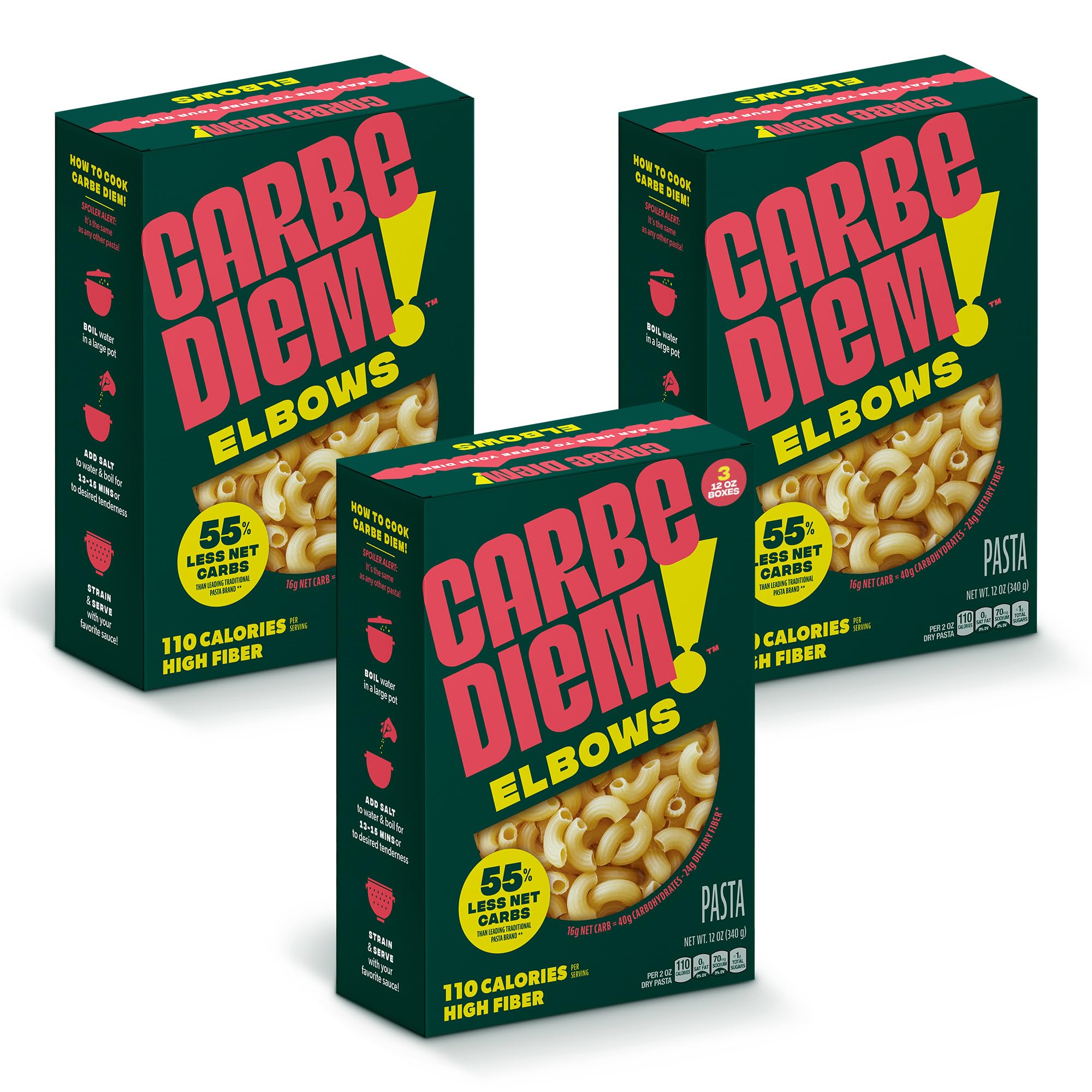 CARBE DIEM! Elbows | Lower Net Carb Pasta with a Traditional Flavor and Texture | Pasta Re-Imagined for Healthy Lifestyles | Reduced Calorie Food | Elbow Pasta | Reduced Calorie Noodles