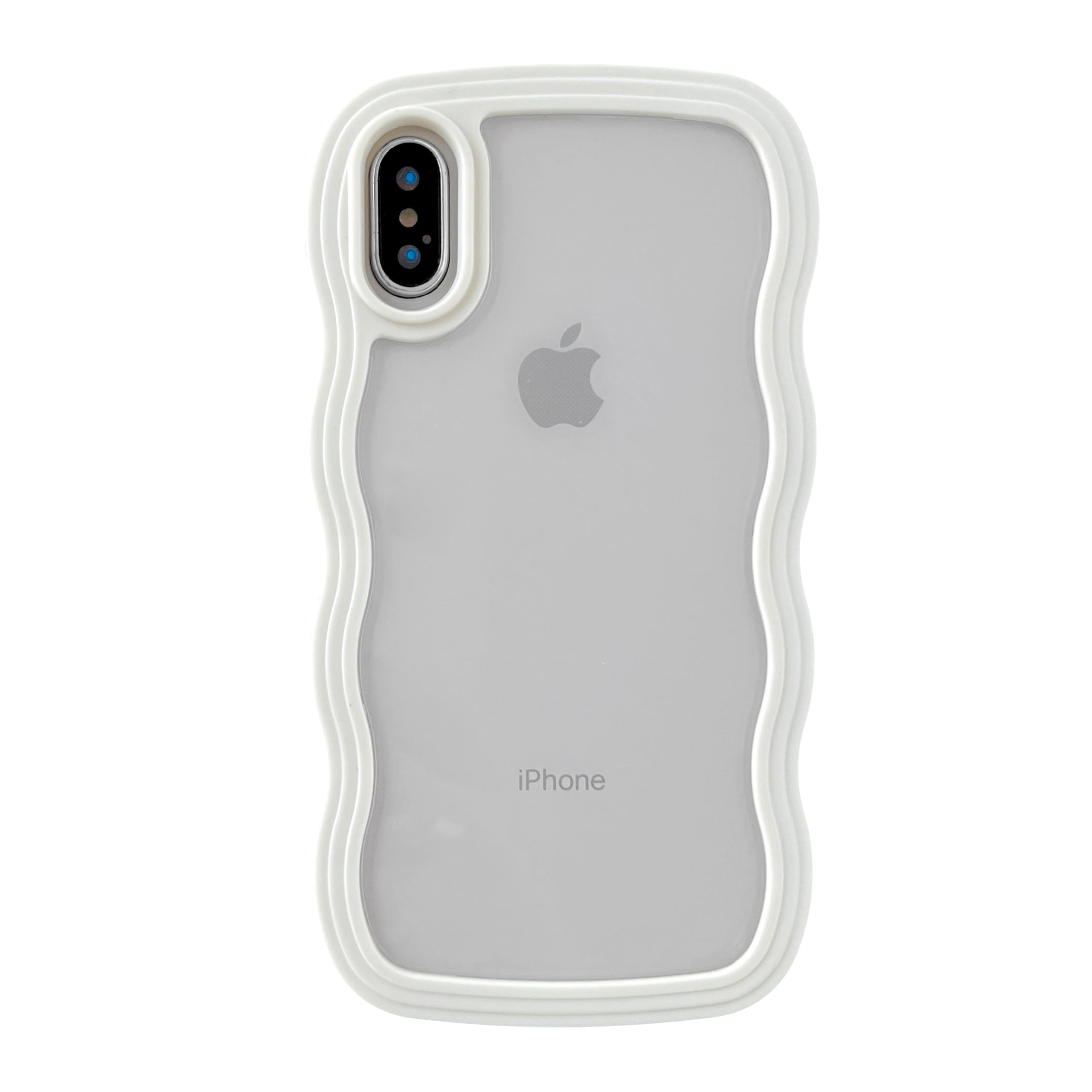 Caseative for iPhone X/Xs Case, Cute Curly Wave Frame Shape Shockproof Soft Compatible with iPhone Case (White,iPhone X/Xs)