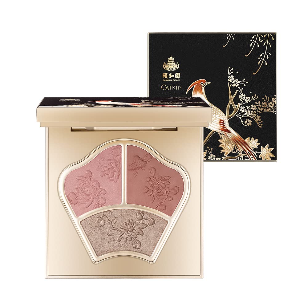 CATKIN X SUMMER PALACE Blusher Pink Nude Eyeshadow Palette Cheek Highlighter, 3-in-1 Moisturizing with Vitamin E Makeup Palette, 7.5g (C01)