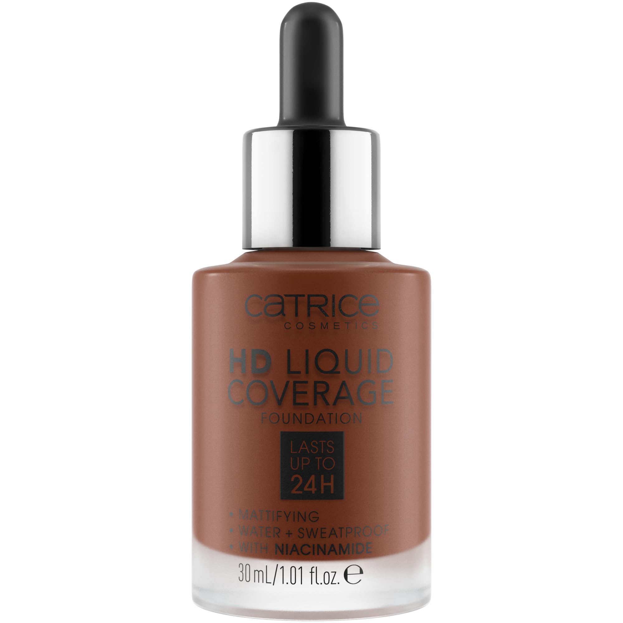 Product DescriptionSecond Skin Effect: The HD Liquid Coverage Foundation feels like a second skin and gives a velvety matted, perfected complexion - up to 24 hours! The ultra-light, liquid texture with high and at the same time natural-looking coverage conceals impurities, nourishes with skin-perfecting niacinamide and is also waterproof, sweat-proof and transferproof. The formula is also free from parabens and microplastic particles. We say no to animal testing. Cosnova is internationally listed with essence and CATRICE at PETA Germany as well as PETA.IngredientsIngredients: Aqua (WATER), Dimethicone, TALC, TRIMETHYLSILOXYSILICATE, PEG-10 DIMETHICONE, NIACINAMIDE, ISODODECANE, SILICA, GLYCERIN, CETYL PEG/PPG-10/1 DIMETHICONE, TOCOPHEROL, SODIUM CHLORORINE IDE, HYDROGEN DIMETHICONE, MAGNESIUM SULFATE, CETYL ALCOHOL, DIMETHICONE/VINYL DIMETHICONE CROSSPOLYMER, DISTEARDIMONIUM HECTORITE, METHICONE, PROPYLENE CARBONATE, TRIETHOXYCAPRYLYLSILANE, ETHYLHEXYLGLYCERIN, PENTAERY. THRITYL TETRA-DI-T-BUTYL HYDROXYHYDROCINNAMATE, ALUMINUM HYDROXIDE, PHENOXYETHANOL, SODIUM DEHYDROACETATE, POTASSIUM SORBATE, BENZOIC ACID, DEHYDROACETIC ACID, PARFUM (FRAGRANCE), CI 7749. 1 (IRON OXIDES), CI 77492 (IRON OXIDES), CI 77499 (IRON OXIDES), CI 77891 (TITANIUM DIOXIDES).DirectionsLiquid make-up. Shake before use.Safety WarningFor external use only. Avoid eye contact.