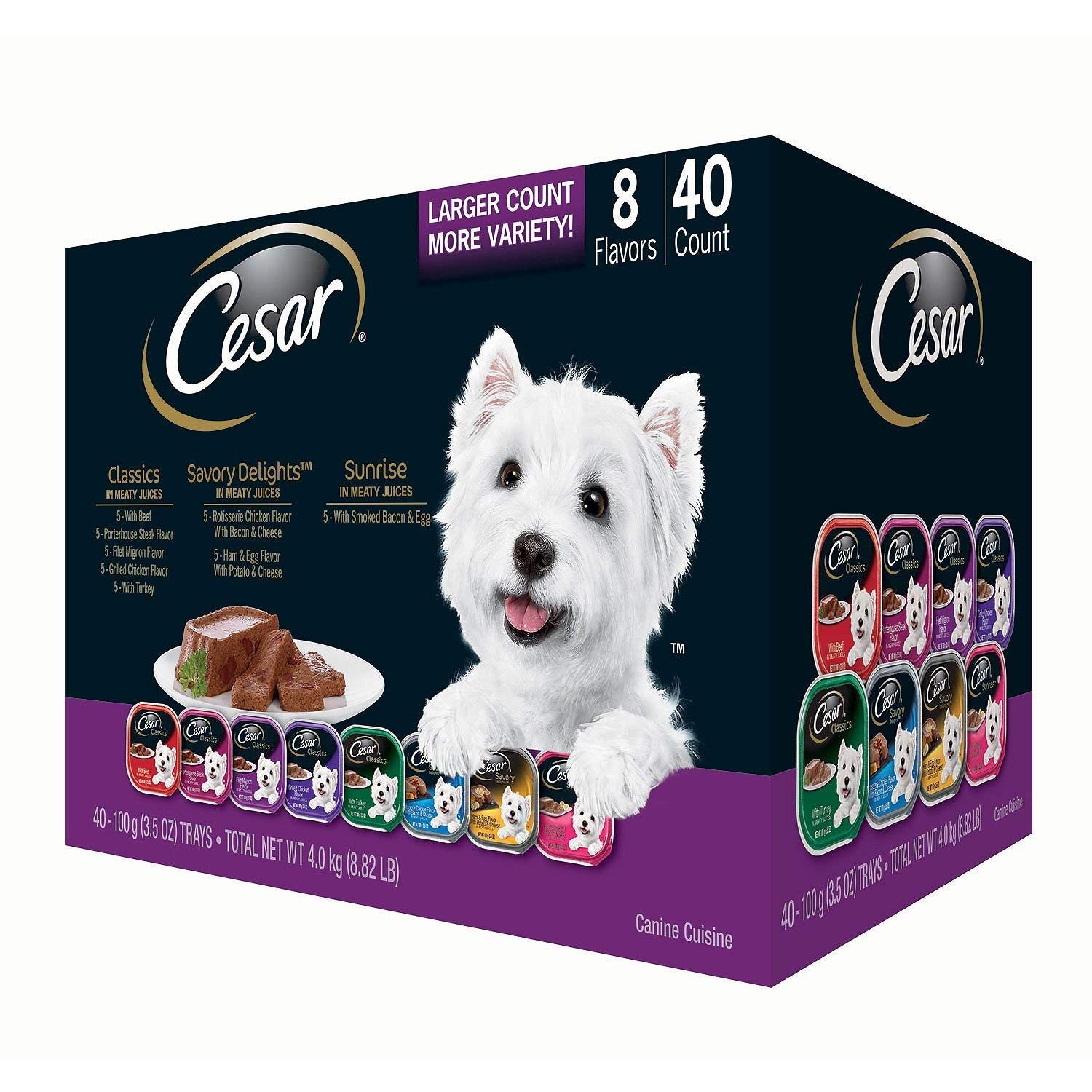 Give your pooch a healthy and flavorful meal with the Cesar canine cuisine wet dog food variety pack. This variety pack of Cesar dog food comes with an assortment of eight different flavors to choose from So you can give your pet some variation at meal times. It’s made with a nutritious formulation that can help small dogs maintain a clean and shiny coat. The Cesar dog food variety pack contains 40 individual 3.5-Oz. Pouches.
