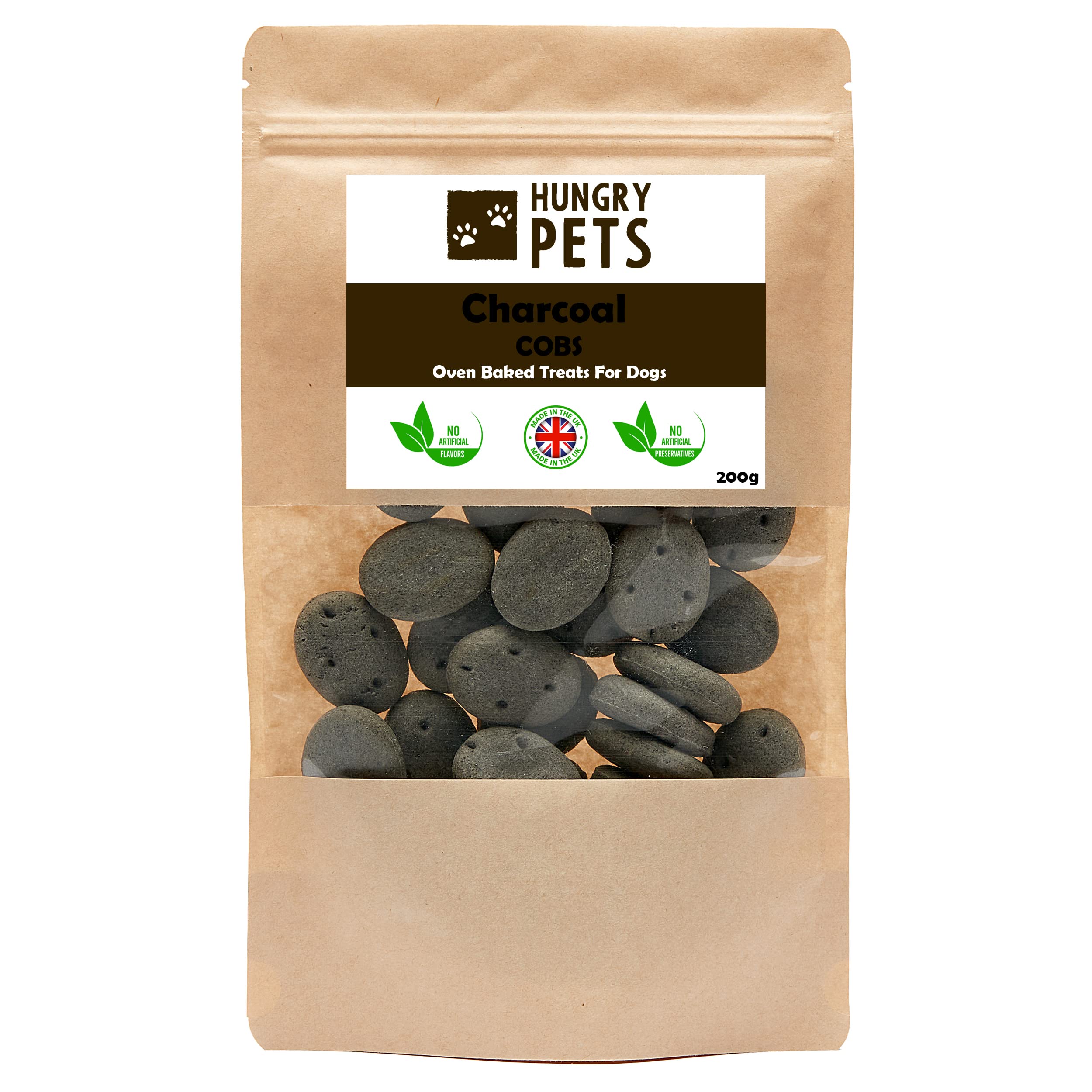 DescriptionProduct DescriptionOur Hungry Pets Charcoal Cobs are tasty baked dog biscuits ideal as a snack between meals or as a tasty dog training treat. A complementary pet food for dogs.IngredientsAll naturalDirectionsStore in a cool dry place