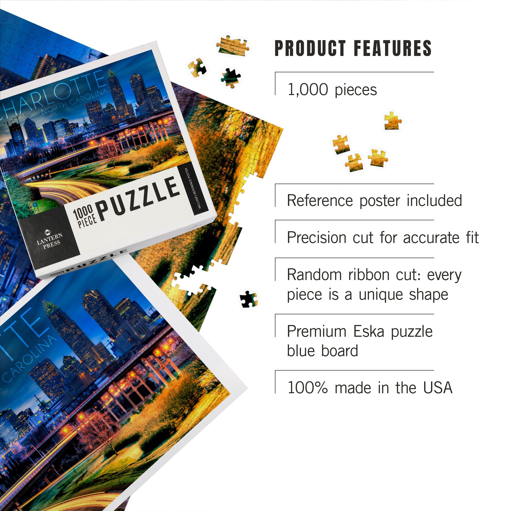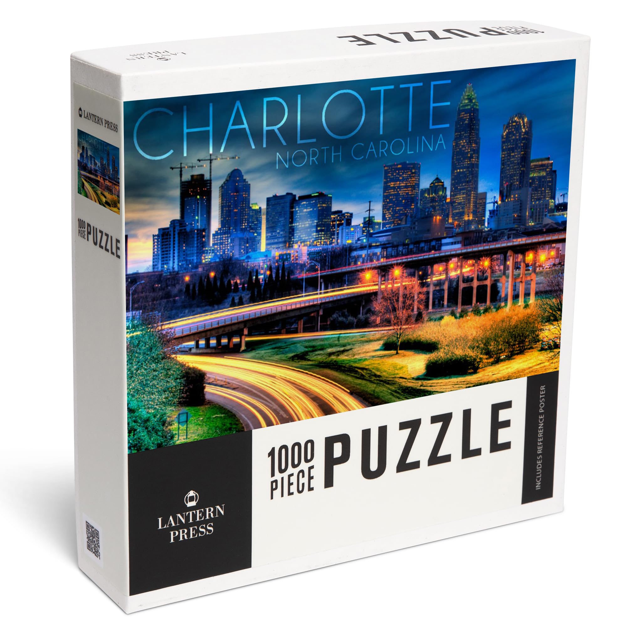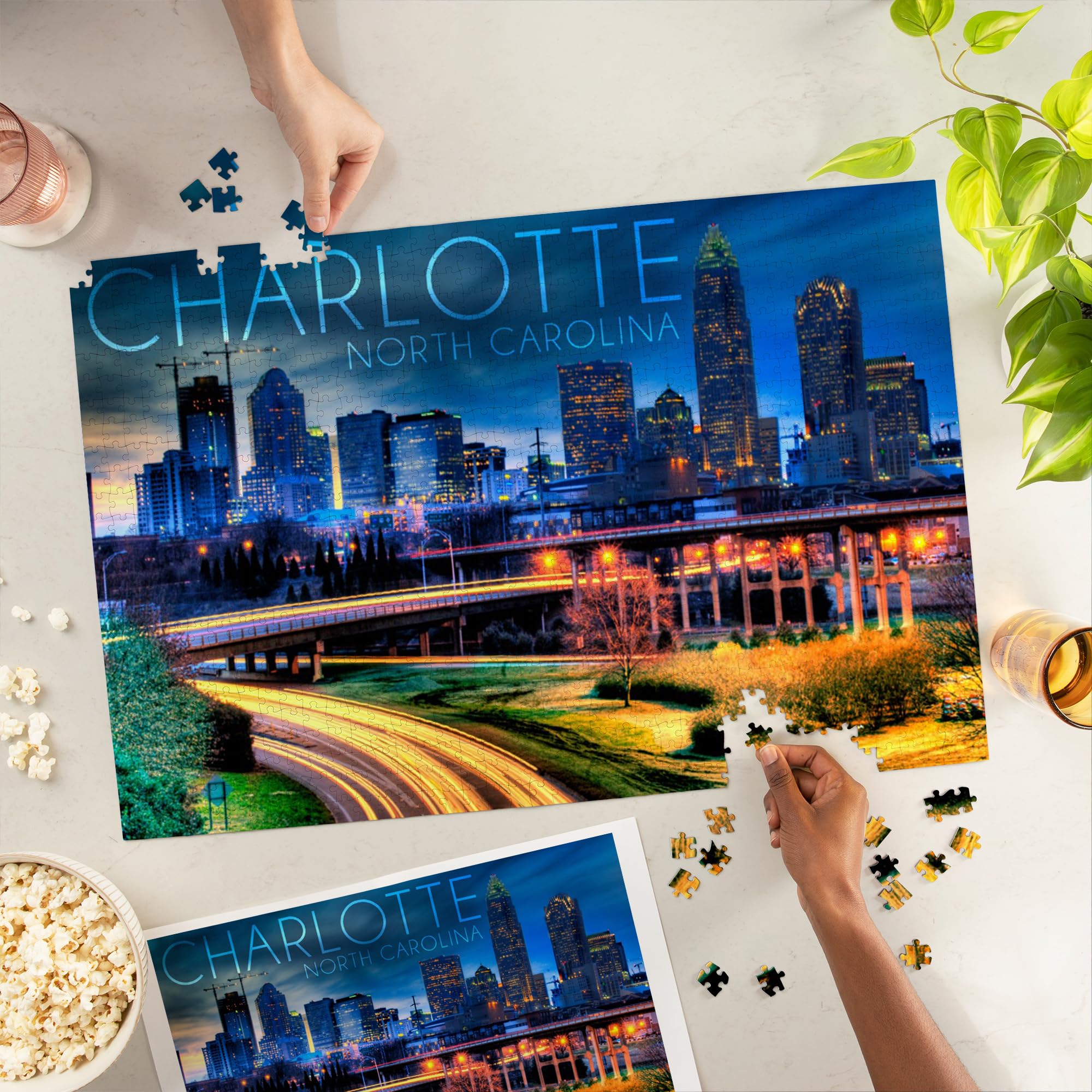 Charlotte, North Carolina, Skyline at Night (1000 Piece Puzzle, Challenging Jigsaw Puzzle for Adults, Made in USA)