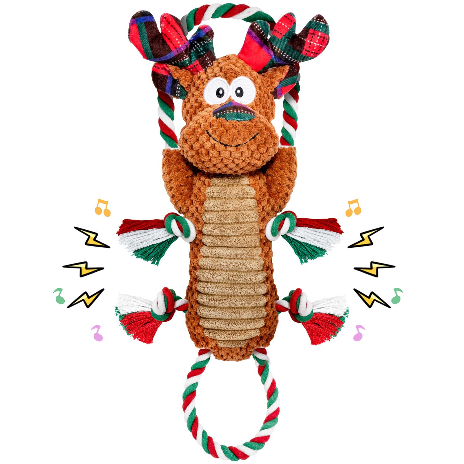 Christmas Squeaky Dog Toys, Dog Plush Toys for Chewers, Cute Christmas Reindeer Durable Interactive Dog Toys for Puppies, Small, Medium, and Large Dogs
