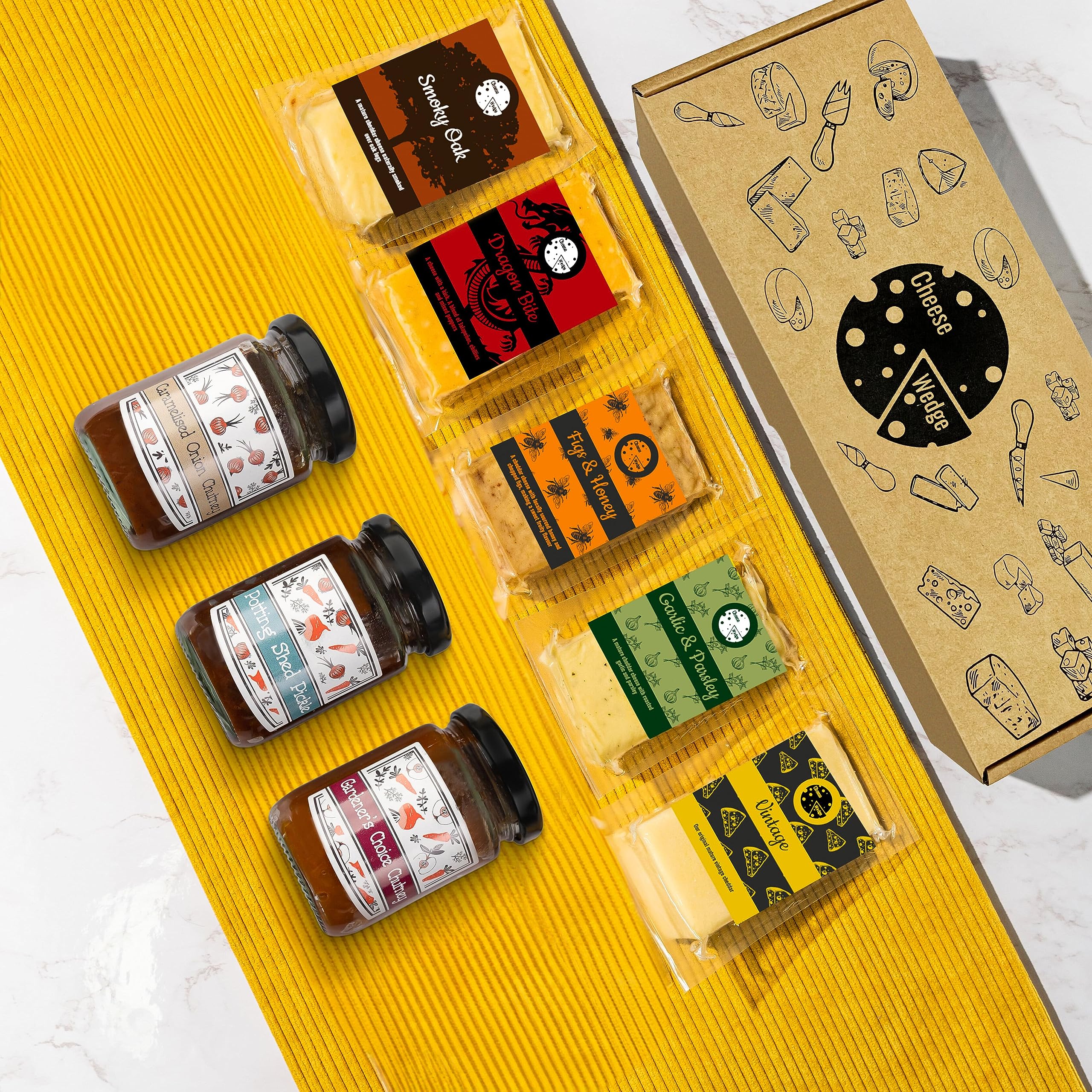 Here is a mix of our 5 wonderful handmade artisan cheeses and chutney gift pack. Fig & Honey, Smoky Oak, Dragon Bite, Garlic & Parsley & Cheddar Crunch. Chutney Pack contains - Caramelised Onion Chutney, Potting Shed Pickle & Gardener's Choice Chutney. All cheeses and chutney are Suitable for Vegetarians. Please store cheeses 5 degrees or below. All orders are packed with cool packs to keep the cheese cool and fresh in transit.