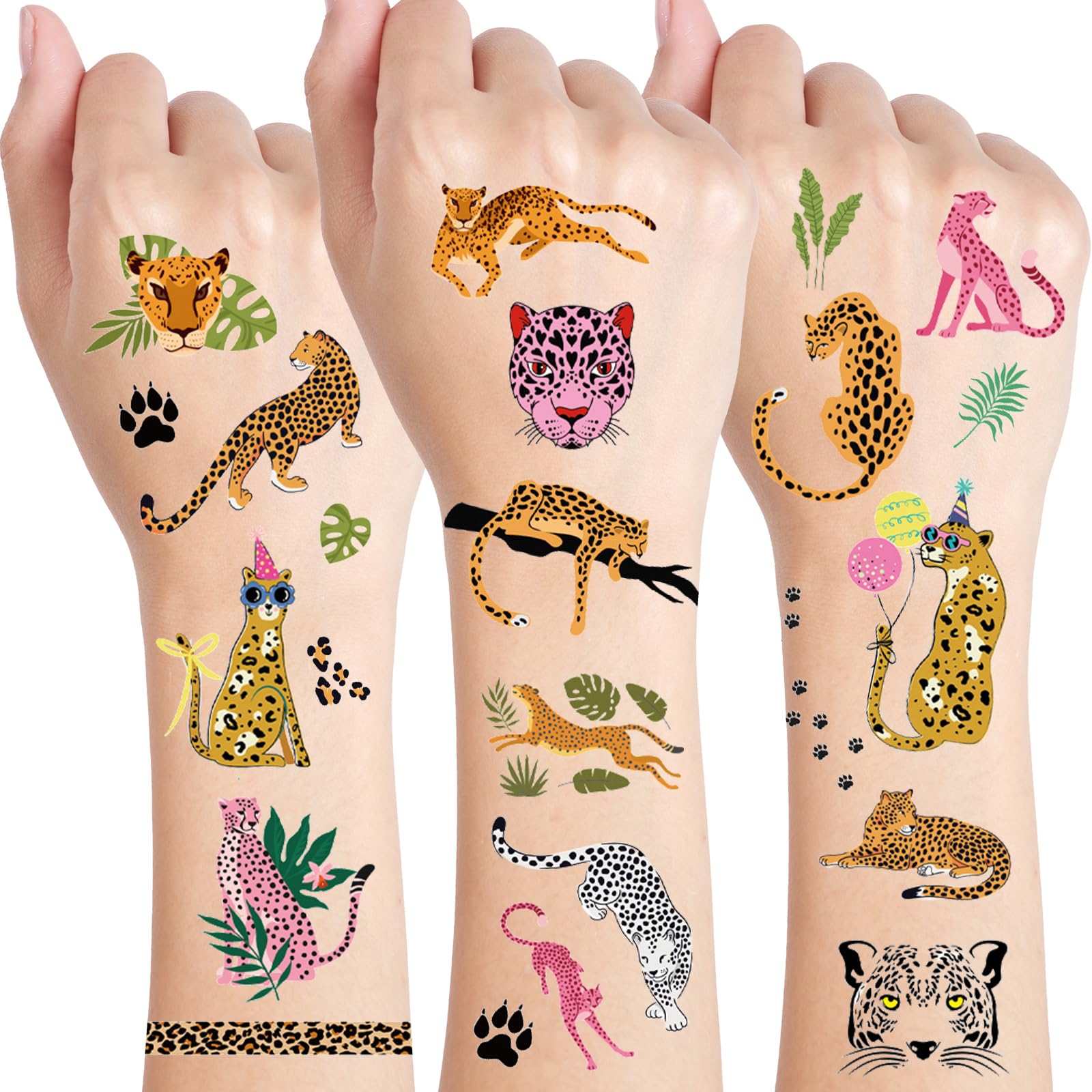 Those cheetah temporary tattoos can be stick on the waist, chest, neck, arms, back, etc. For better use, please do not covering it on the wound or use broken tattoos, and keep the skin clean before use.
