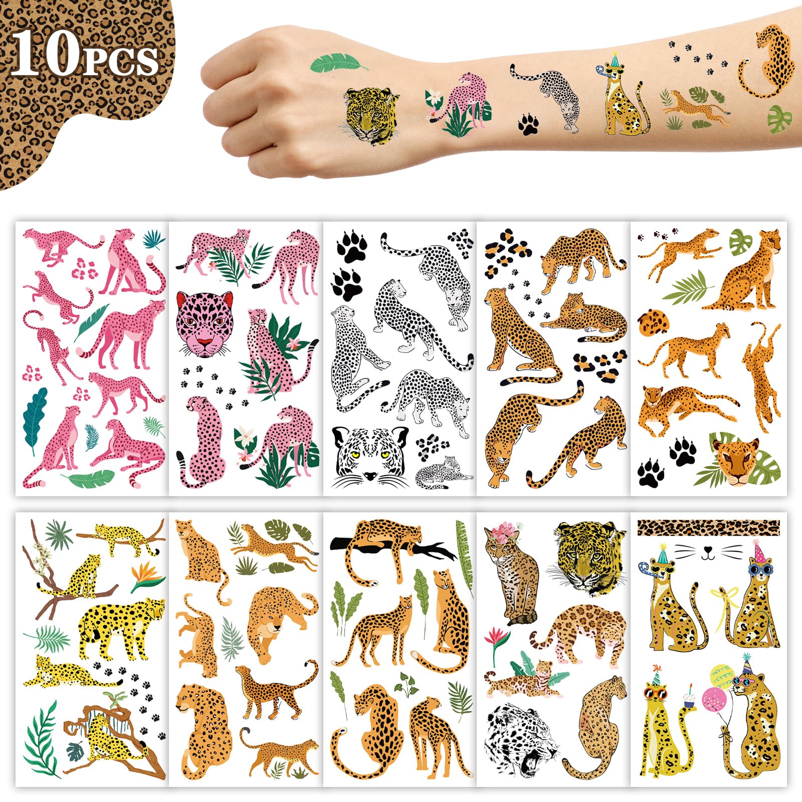 Great cheetah tattoos for cheetah parties: 10 sheets, each sheet measured approx. 2.7*4.7inch.