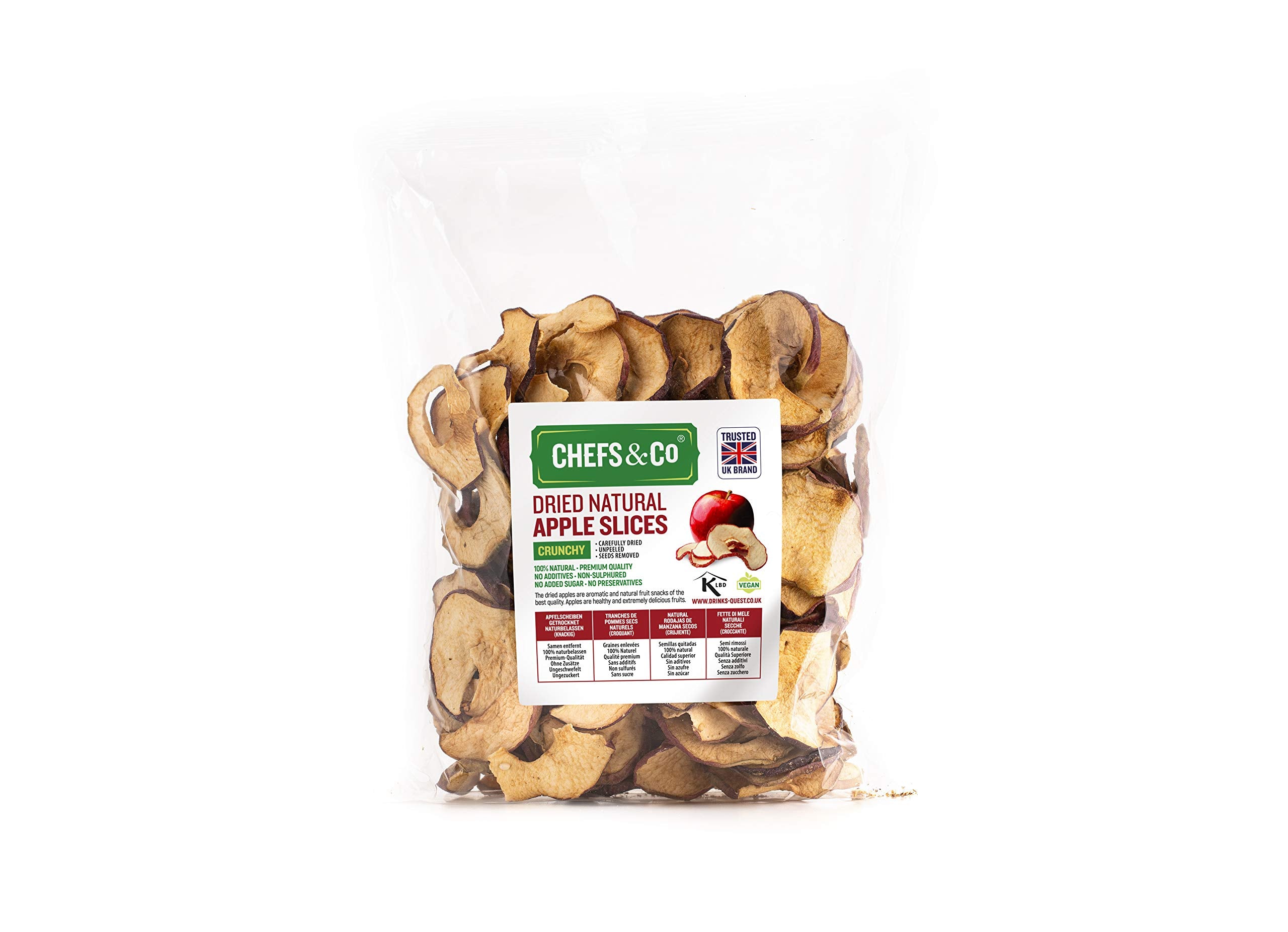 Introducing our CHEFS & CO CRUNCHY Dried Apple Slices, the perfect healthy snack for any time of the day! Our 100% natural whole dried fruit is carefully selected, dried and unpeeled to retain maximum nutrients and flavour. With the seeds removed, you can enjoy the sweetness of the apple slices without any hassle. We don't use preservatives or add sugar to our product, ensuring you get a guilt-free snack. Our apple slices come in a 250g pack, making it easy to grab and go or pack in your lunchbox. They are also crunchy, giving you a satisfying snack experience that will keep you going throughout the day. 100% Natural - Our CHEFS & CO Dried Apple Slices are made from 100% natural whole dried fruit, ensuring that you get a snack that is as healthy as it is delicious. Seeds Removed - With seeds removed, you can enjoy the sweetness of the apple slices without any hassle. No Preservatives - We don't use any preservatives in our product, ensuring that you get a guilt-free snack. No Added Sugar - We don't add any sugar to our product, ensuring that you get a snack that is as healthy as it is delicious.