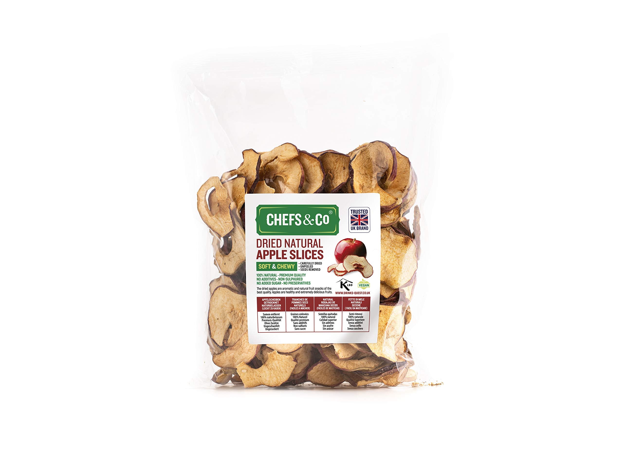 Introducing our CHEFS & CO SOFT & CHEWY Dried Apple Slices, the perfect healthy snack for any time of the day! Our 100% natural whole dried fruit is carefully selected, dried and unpeeled to retain maximum nutrients and flavour. With the seeds removed, you can enjoy the sweetness of the apple slices without any hassle. We don't use any preservatives or add any sugar to our product, ensuring that you get a guilt-free snack. Our apple slices come in a 250g pack, making it easy to grab and go or pack in your lunchbox. They are also soft & chewy, giving you a satisfying snack experience that will keep you going throughout the day. 100% Natural - Our CHEFS & CO SOFT & CHEWYDried Apple Slices are made from 100% natural whole dried fruit, ensuring that you get a snack that is as healthy as it is delicious. Seeds Removed - With seeds removed, you can enjoy the sweetness of the apple slices without any hassle. No Preservatives - We don't use any preservatives in our product, ensuring that you get a guilt-free snack. No Added Sugar - We don't add any sugar to our product, ensuring that you get a snack that is as healthy as it is delicious.