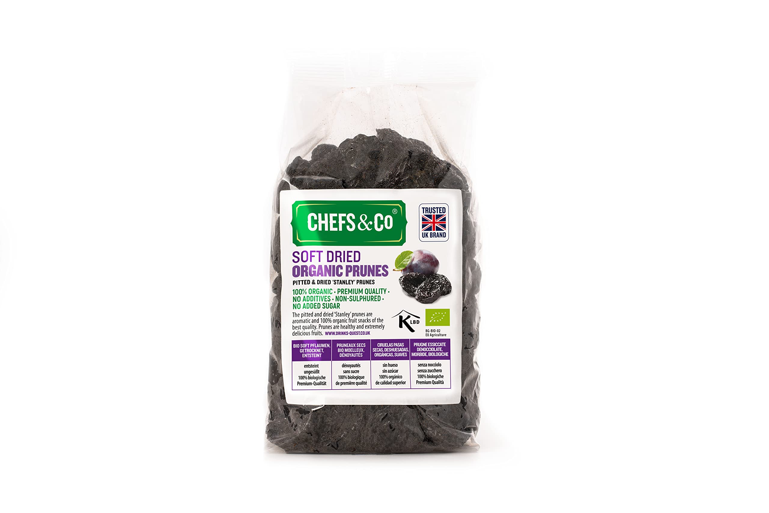 🧉Introducing CHEFS & CO Soft Dried Fruits Organic Prunes for the perfect healthy snack choice. Our dried prunes are 100% Certified Organic Whole fruits, with no additives, sulphuring or GMOs, plus they're gluten-free, Vegan and BPA-free, with no added sugar and Kosher certified. The prunes have already been pitted, so you don’t need to worry about taking out the pits also, the intense flavour and smell make them an absolute delight. Organic and full of juicy flavour, these offer an excellent nutritional profile without added sugar, perfect portion-sized dried fruit snacks. Everyone from children to adults enjoys these delicious prunes as a healthy snack anytime with this pack, whether at the camp as a camp food or in front of the TV, these dried Certified Organic Whole fruits are ideal for small sweet snacks anytime and anywhere. Add these Organic dried prunes to your muesli mixtures or as a baking ingredient. They are a great source of antioxidants. IMPORTANT: Once opened, keep in an airtight container. If your prunes arrive hard, dry, or uneatable, it likely means the packaging was damaged at the warehouse, exposing the prunes to air. Such damage affects their quality. If this happens, please request a refund and reorder. Remember, our natural prunes have no artificial preservatives, making them vulnerable if packaging is compromised.