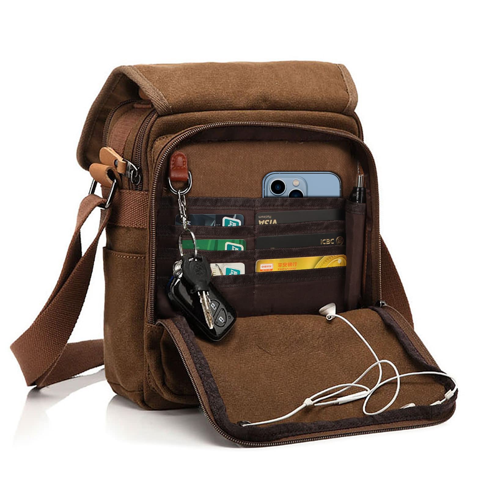 CHEREEKI Canvas Bag, Shoulder Bag Messenger Bag with Multiple Pockets (Hold 10 inch Tablet, iPad, Kindle)