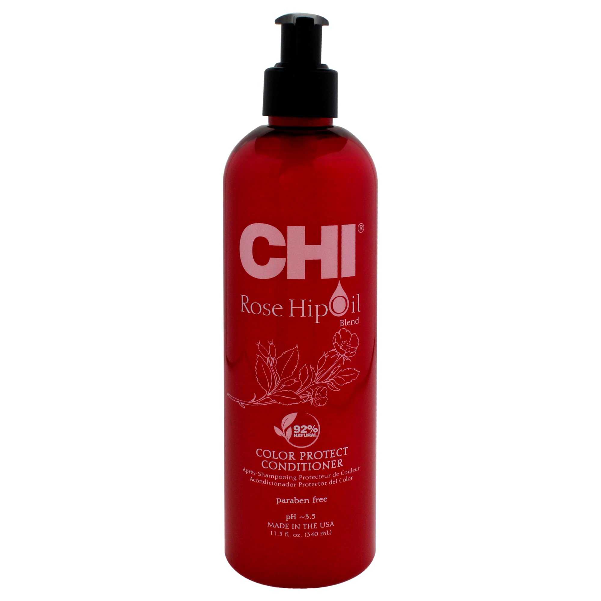 Product Description• Color maintain conditioner for colored hair. • Restores moisture to color-treated hair to eliminate dull and dry hair. • The low pH formula helps retain hair color by sealing the hair’s outermost cuticles. • Vitamin C revitalizes for added radiance and shine. • 92% Natural ingredients. • Paraben and gluten free. Instructions: • Shampoo with CHI Rosehip Oil shampoo and towel dry. • Apply a generous amount of CHI Rosehip Oil Conditioner into lengths and ends. • Leave in for 3-5 minutes. • Rinse thoroughly with cool water. • Follow up with CHI Rosehip Oil Repair & Shine Tonic. Key ingredients: • Olive Oil, Rose Hip Oil, Silk, Provitamin B5, Keratin.IngredientsAqua/Water/Eau, Cetyl Alcohol, Cetearyl Alcohol, Dicetyldimonium Chloride, Bisamino PEG/PPG-41/3 Aminoethyl PG-Propyl Dimethicone, Behentrimonium Chloride, Olea Europaea (Olive) Fruit Oil, Rosa Canina Fruit Oil, Hydrolyzed Silk, Panthenol, Cocodimonium Hydroxypropyl Hydrolyzed Keratin, Ceteareth-20, Amodimethicone, Polyquaternium-37, Phenoxyethanol, Caprylyl Glycol, Propylene Glycol Dicaprylate/Dicaprate, Isopropyl Alcohol , Guar Hydroxypropyltrimonium Chloride, Ethylhexyl Methoxycinnamate, Potassium Sorbate, Glycolic Acid, Xylitylglucoside, Trideceth-10, Cetrimonium Chloride, PPG-1 Trideceth-6, Anhydroxylitol, Hexylene Glycol, Benzophenone-3, Sodium Ascorbyl Phosphate, Xylitol, Trisodium HEDTA, Fragrance(Parfum), Linalool, Citronellol, LimoneneSafety WarningX