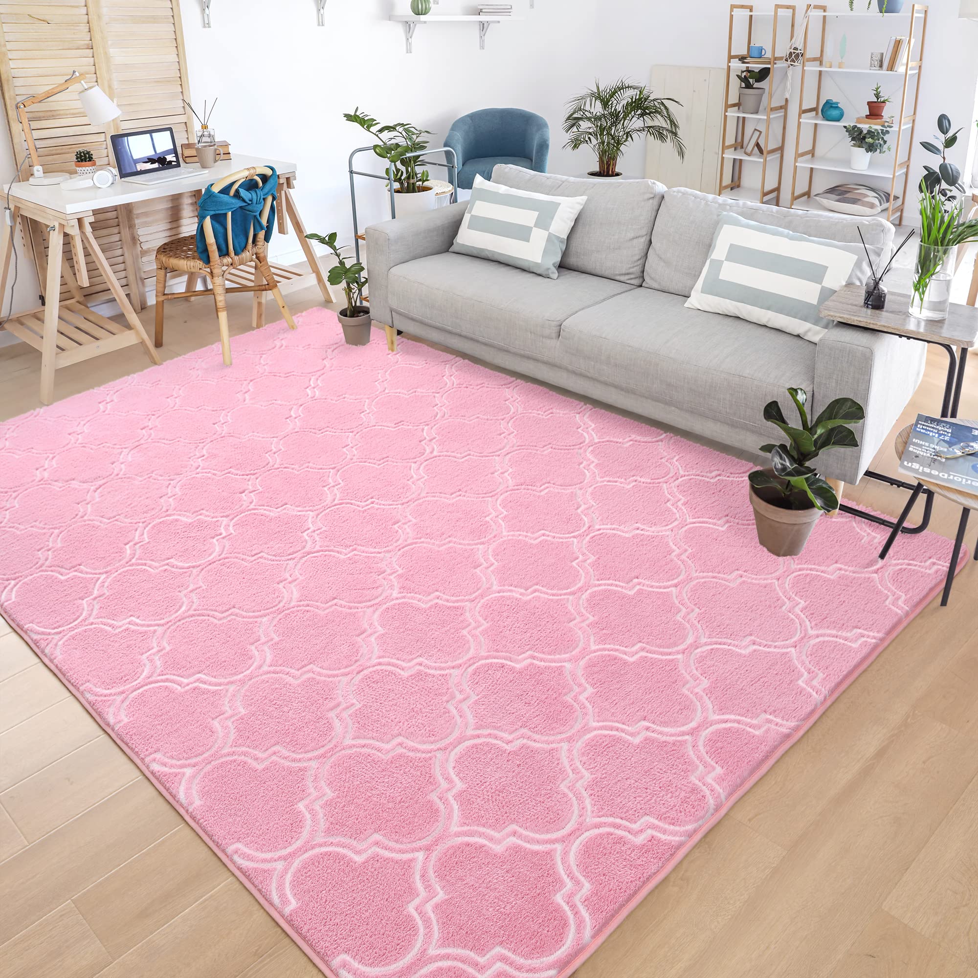 5x7 living room Bedroom carpet shag geometric grey navy pink modern area rug for living room bedroom playroom bedside Memory Foam dorm rug extra soft fluffy fuzzy plush rug for girls kids nursery room decor play mat