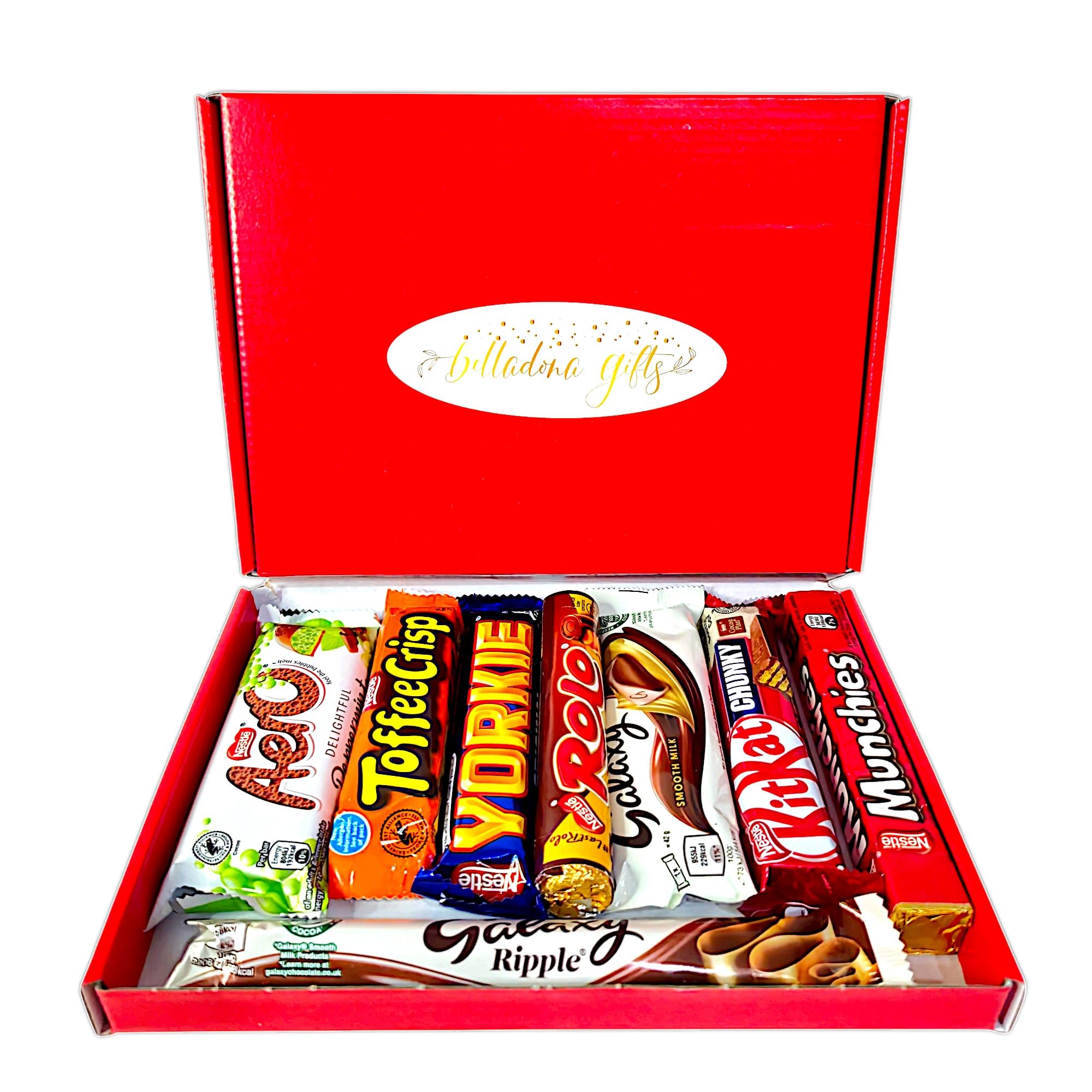 Indulge in the delightful world of chocolate with Belladona Gifts, where we believe that every moment deserves a touch of sweetness. Our expertly curated Chocolate Gift Box is the ideal present for anyone who enjoys the rich, velvety allure of chocolate. This gift is not just a treat; it’s an experience that brings joy and warmth to every recipient, from children to grandparents. Our Chocolate Gift Box features eight full-sized bars of the finest chocolate, each carefully selected to tantalise the taste buds and satisfy even the most discerning chocolate lovers. Whether it’s creamy milk chocolate, or exciting flavour combinations, there’s something for everyone to enjoy. With Belladona Gifts, you can surprise your loved ones with a delightful assortment that will make their hearts (and taste buds) sing. What sets our Chocolate Gift Box apart is its letterbox-friendly design. Gone are the days of worrying about missed deliveries or awkwardly sized packages. Our gift box fits perfectly through most letterboxes, ensuring that your sweet surprise arrives safely and conveniently, even if the recipient isn’t home. This thoughtful feature makes it easier than ever to send a token of affection to friends, family, or colleagues, no matter where they are in the UK. Belladona Gifts is committed to making gifting effortless and special. With just a few clicks, you can select the perfect gift and send it directly to your recipient’s door. Whether it’s a birthday, anniversary, thank you, or just because, our Chocolate Gift Box is the ultimate way to convey your sentiments. Imagine the joy on their face as they discover a box filled with luscious chocolate bars, ready to be savoured and enjoyed. Our gift box is not only a treat for the taste buds; it’s also a thoughtful gesture that shows you care. In today’s fast-paced world, taking the time to send a gift can mean so much, and Belladona Gifts makes it easy to do just that. Our chocolates are perfect for all occasions, whether you’re celebrating a milestone or simply want to brighten someone’s day. From kids who will delight in the sweetness to grandparents who appreciate a touch of nostalgia, our gift box suits all ages and tastes. Each bar in our Chocolate Gift Box is crafted with high-quality ingredients, ensuring that every bite is a moment of bliss. We take pride in sourcing our chocolate from reputable suppliers, so you can feel confident that you’re giving a gift that’s not only delicious but also ethically produced. So why wait? Surprise someone special today with Belladona Gifts. Our Chocolate Gift Box is the perfect way to express your feelings, show appreciation, or simply let someone know you’re thinking of them. With our convenient delivery options, beautiful presentation, and mouth-watering selection of chocolates, your gift will leave a lasting impression. Make every occasion memorable with the sweet taste of Belladona Gifts. Treat your friends, family, or even yourself to a delightful chocolate experience that will be cherished and savoured. Order your Chocolate Gift Box today and spread the joy of chocolate in an unforgettable way!