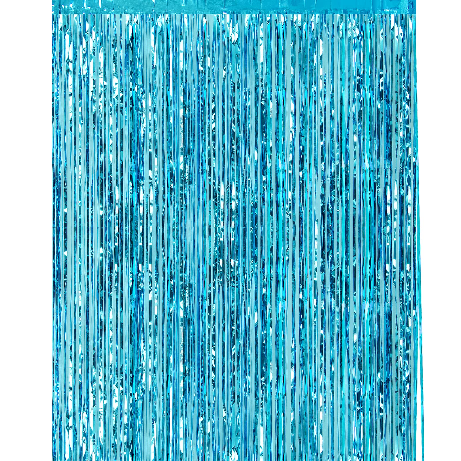 CHRORINE 1pcs 6.5ft Light Blue Metallic Tinsel Foil Fringe Curtain Door Curtains Hanging Streamers for Frozen Mermaid Birthday Baby Shower Mama Mia Bachelorette Blue Party Decorations