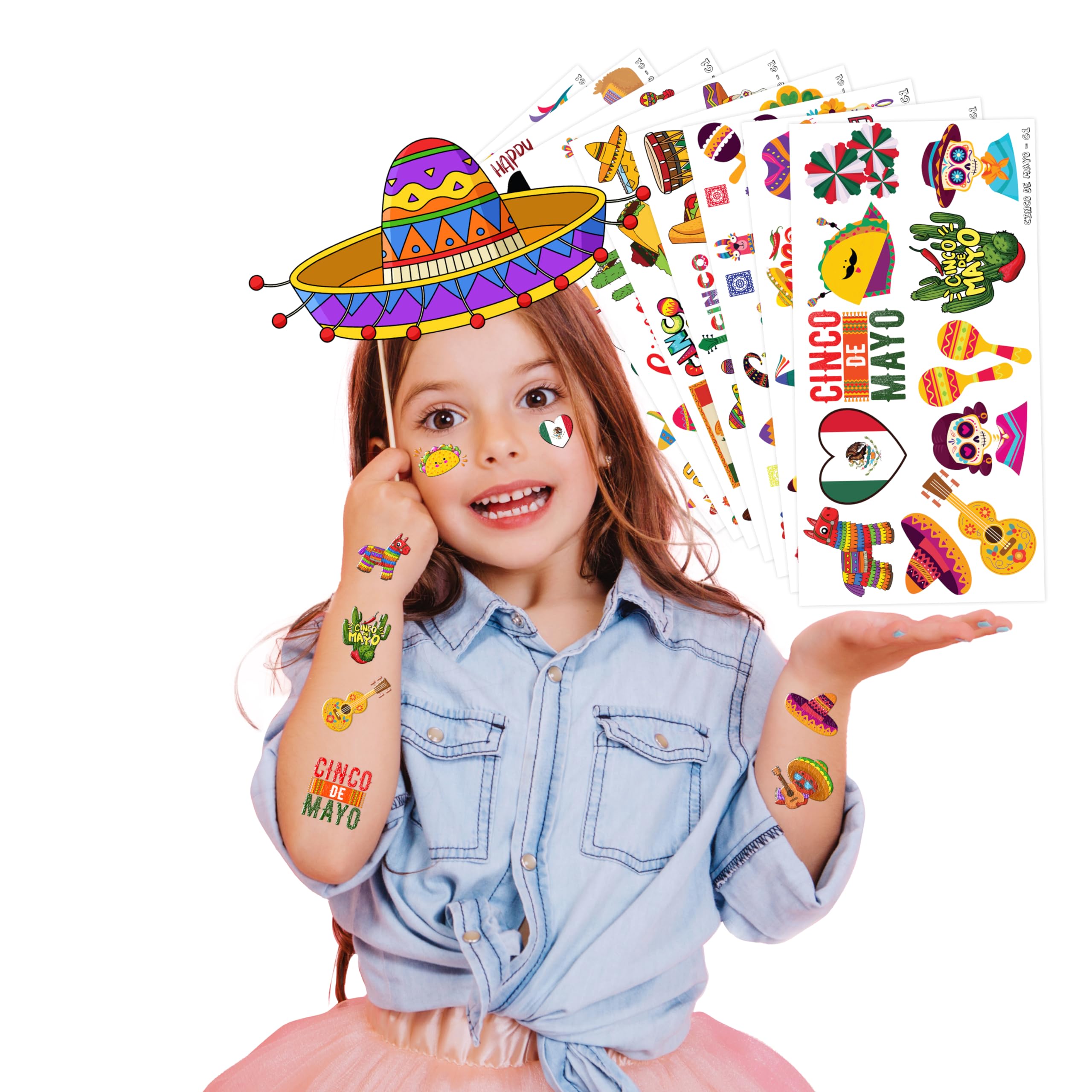 Cinco De Mayo Temporary Tattoos Fiesta Tattoos for Kids Cinco De Mayo Party Decorations Taco Mexican Tattoos Stickers for Fiesta Party Supplies Favors