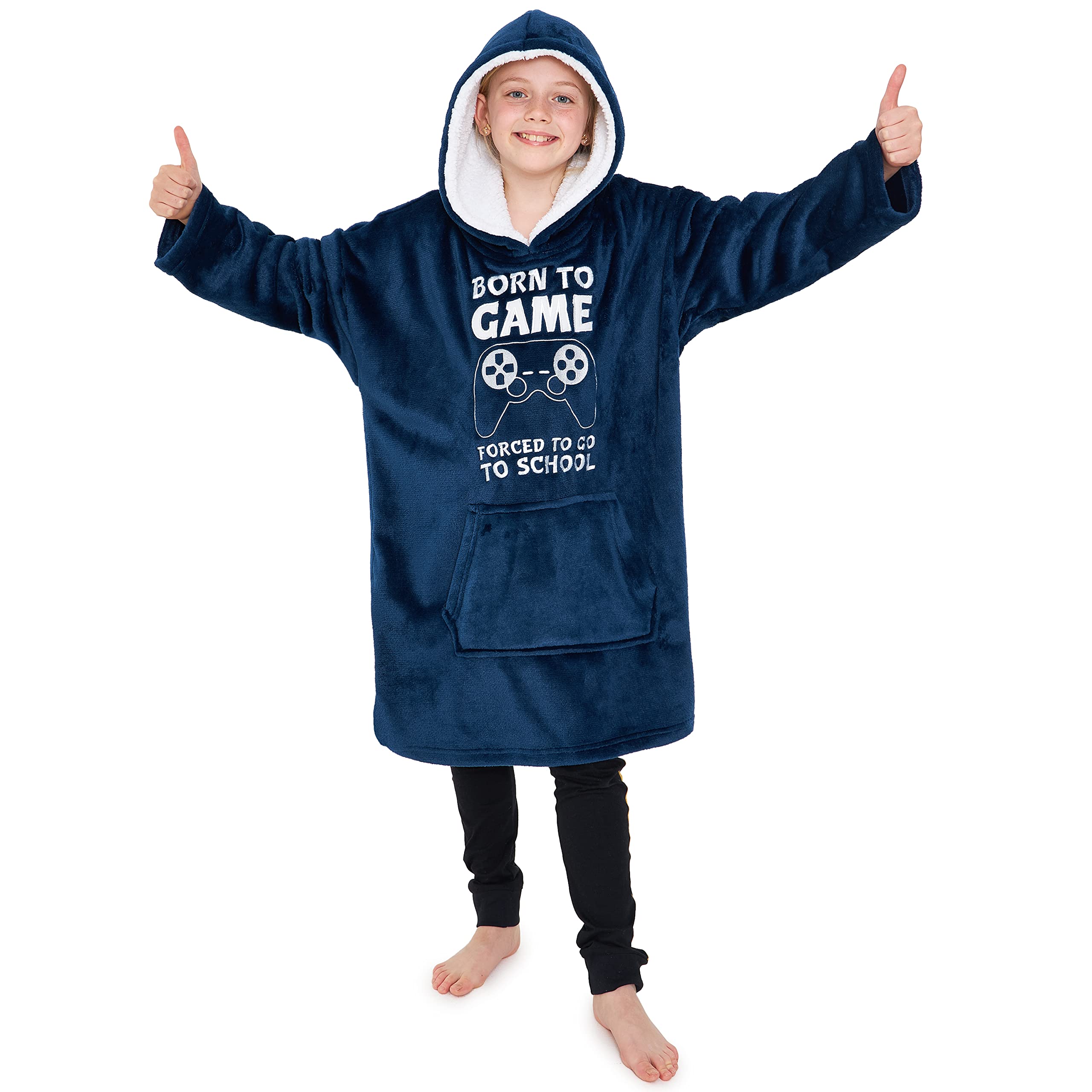 Multiple cool designs to choose from, including 1 cool glow in the dark space themed blanket hoodie (place the hooded blanket under direct light to charge it and activate the glow in the dark feature). Features a cosy sherpa-lined hood, long sleeves and a roomy kangaroo pocket to keep small hands warm. Available in 1 size fits all for kids and teens, see images for the sizing chart. See images for more features and details.